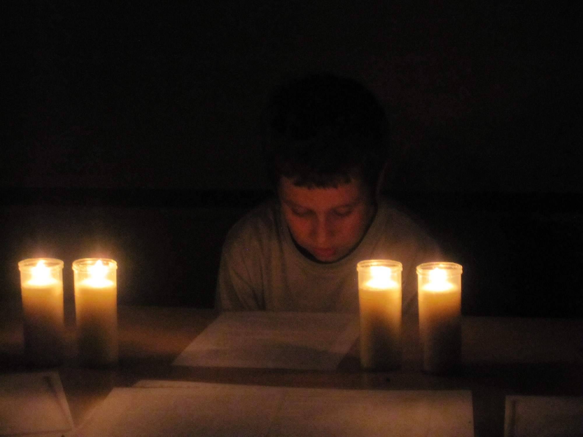 Neki su i zavrišitali kad se u mraku knjižnice čulo lupanje po odškrinutom prozoru, a zatim se ispred prozorskog stakla pojavila prilika u bijelom odguravajući prozor kako bi ušla unutra. U trenutku kad je započelo kucanje po prozoru, nas tridesetak na „Tulumu čitanja pod svijećama“ (14.11. 2014.), slušali smo priču o duhu koju je u mraku, samo uz svjetlost svijeća čitao šestaš David Đurin. Jeza koju smo osjetili, nestala je tek kad je prilika u bijelom progovorila. Ipak nije to bio duh već bijelom plahtom prekriven naš domar Ivica Biškup, koji je prozor na prvom katu dosegnuo zahvaljujući visokim ljestvama.