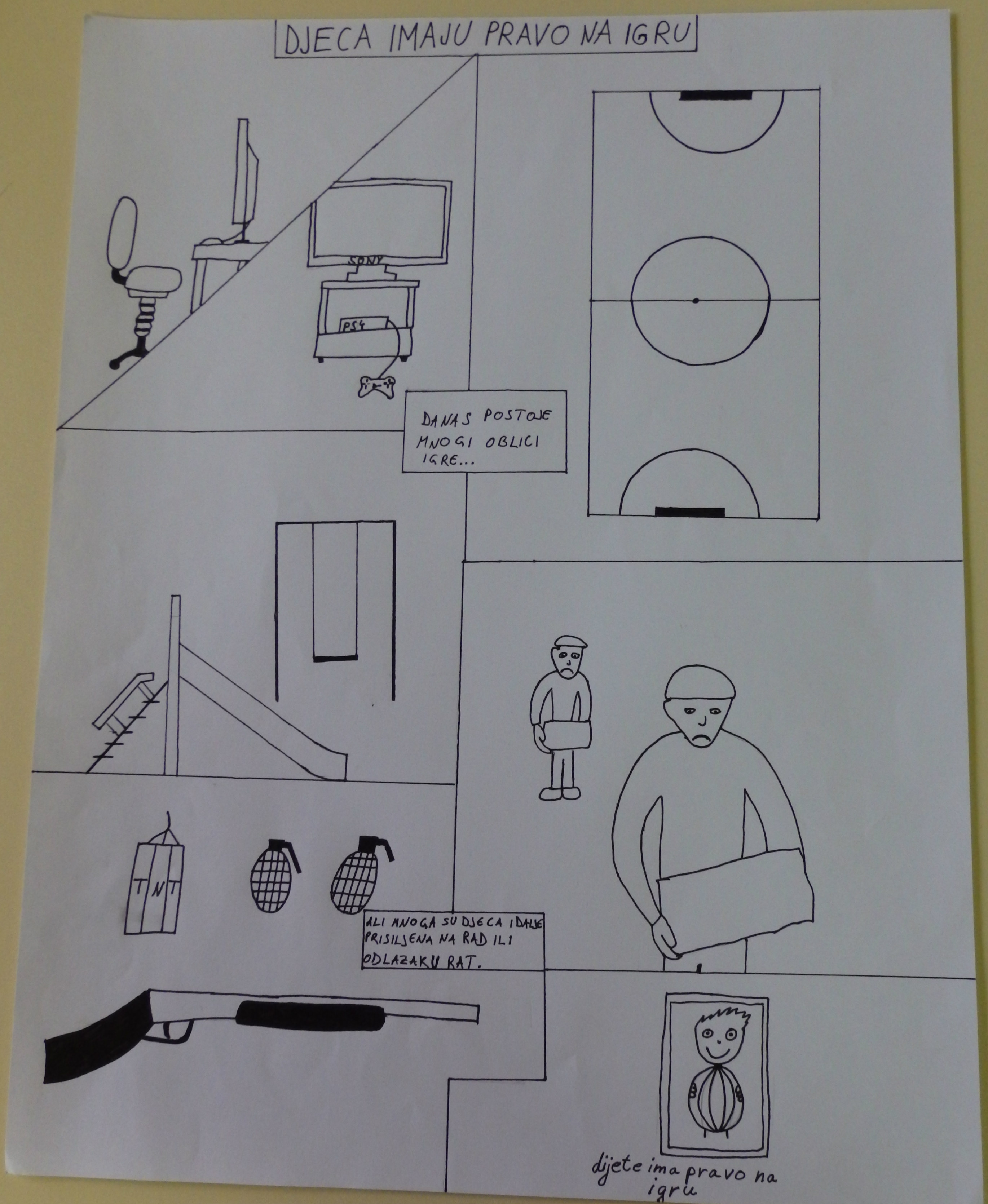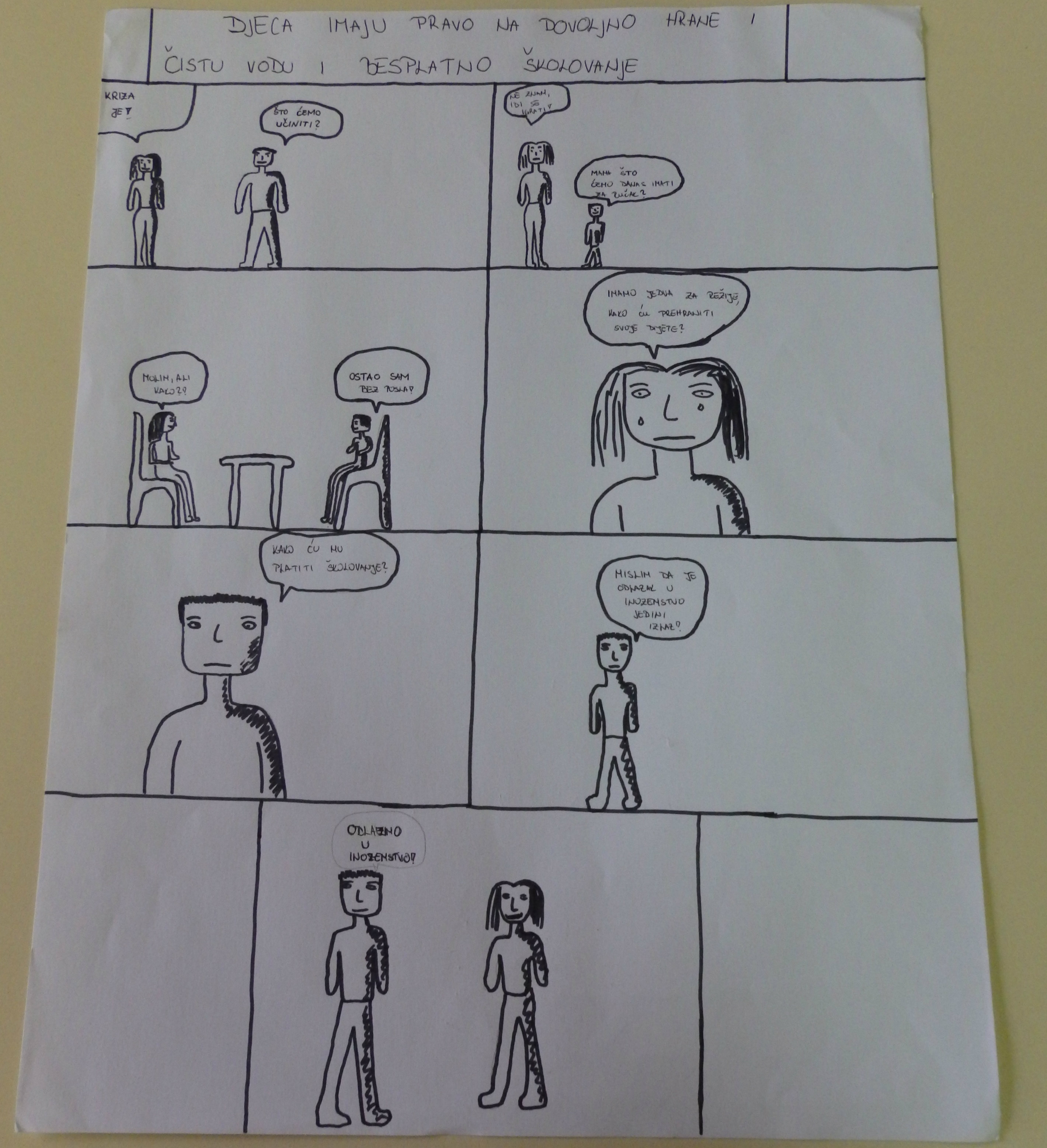 Kako o dječjim pravima promišljaju učenici naših osmih razreda, imali su prilike nedavno pokazati i na satu likovnog odgoja učiteljice Željke Fadige. Nakon što su u uvodu sata čitali pojedine članke iz Konvencije o pravima djeteta, dobili su zadatak nacrtati strip o nekom od prava.