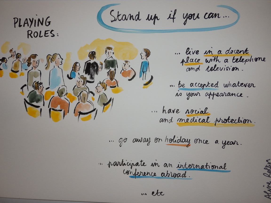 Bilo je zanimljivo igrati i igru uloga. Igrajući je izvlačili smo uloge i potom smo se morali uživjeti u neku od njih i dizati se kad su postavljana pitanja o mogućnostima koje nam se pružaju u životu da smo ta osoba. Ja sam izvukla ceduljicu s ulogom beskućnika. Neke od uloga bile su izbjeglica, ambasadoreva kćerka, umirovljeni radnik tvornice cipela, ….
