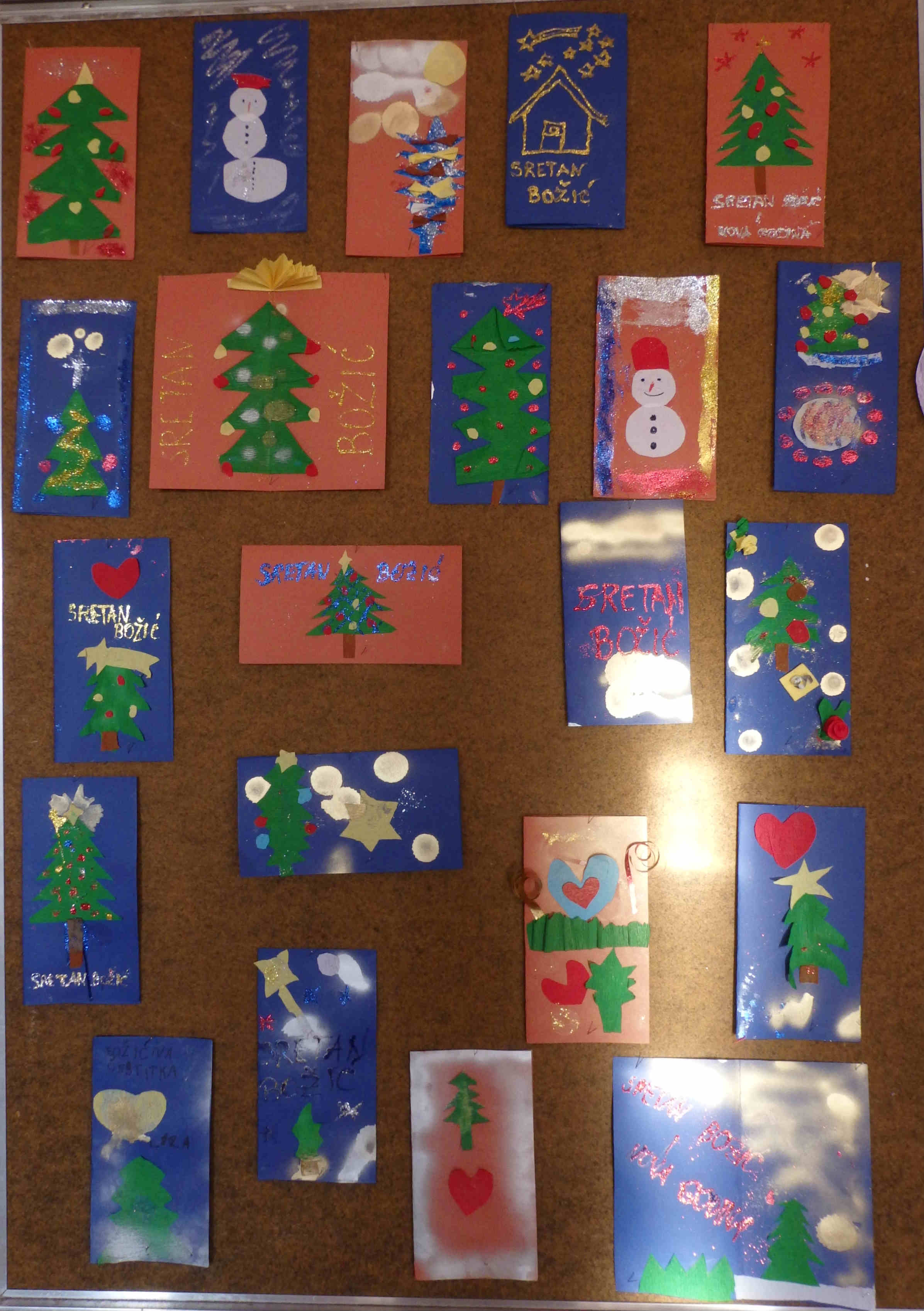 Dio izrađenih božićnih čestitki izložen je na prigodnom panou u učionici. /Ana-Marija Nemčić, 7.b; foto: Mihael Kos/