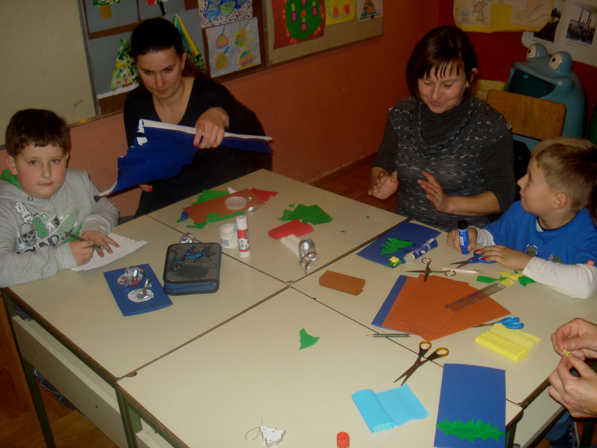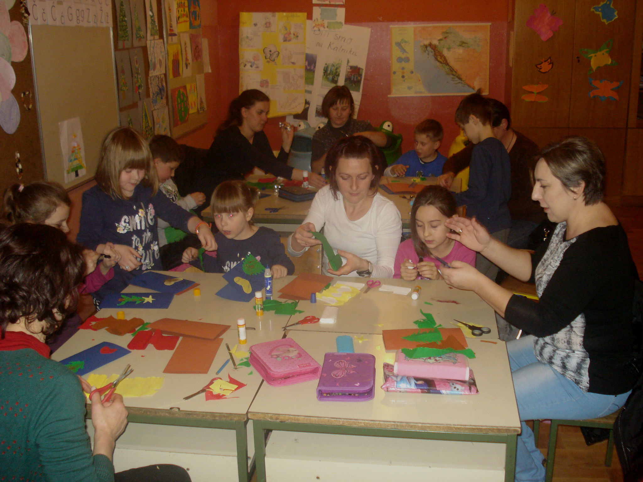 Roditelji, učenici i učiteljica Kos družili su se izrađujući prigodne božićne čestitke.