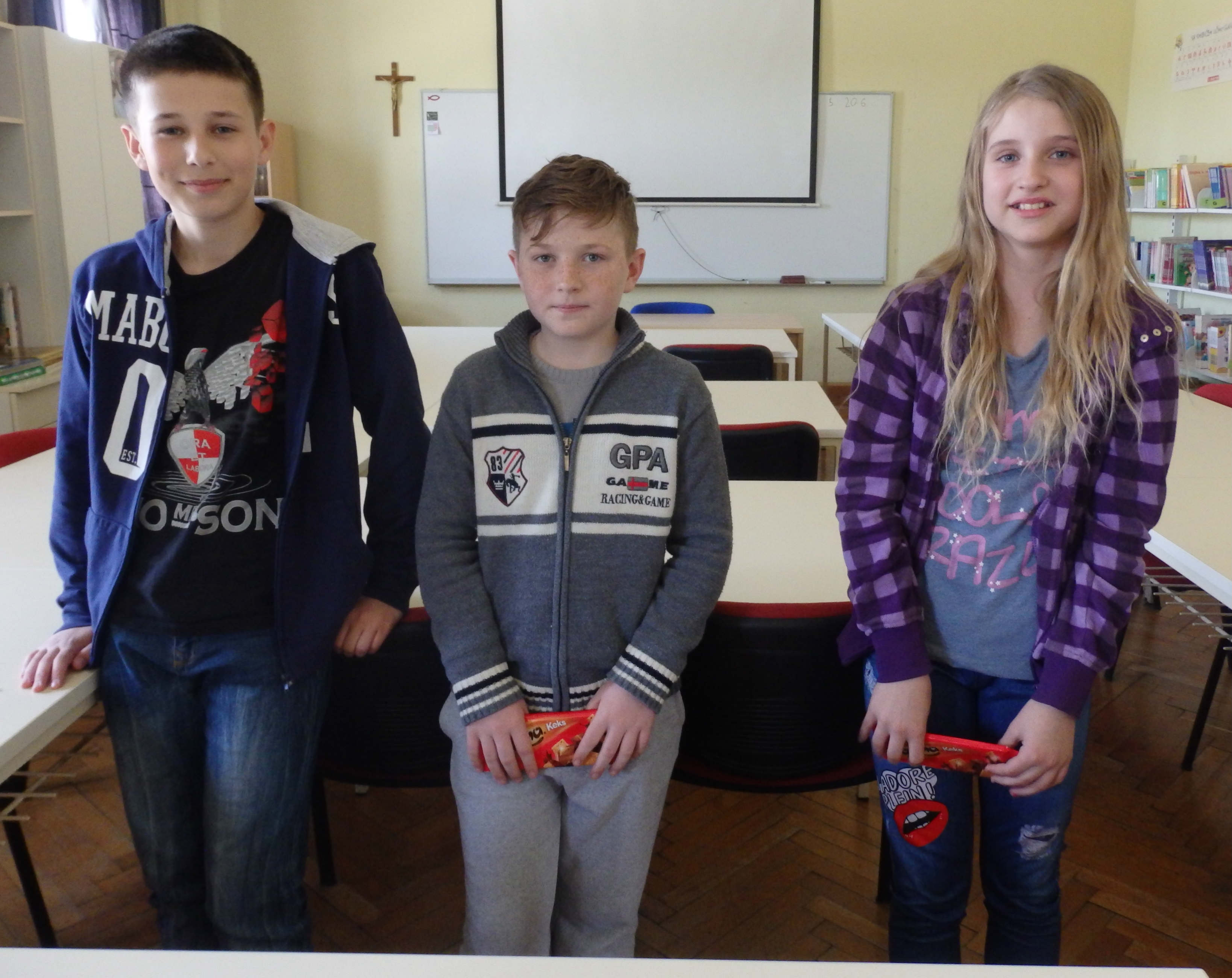 Kviz “Pazite kako igrate” – (7.4.) – 6. b – prvo mjesto podijelili su Danijela Hruškovec i Renato Miklečić, drugo mjesto Ivan Mrazović.