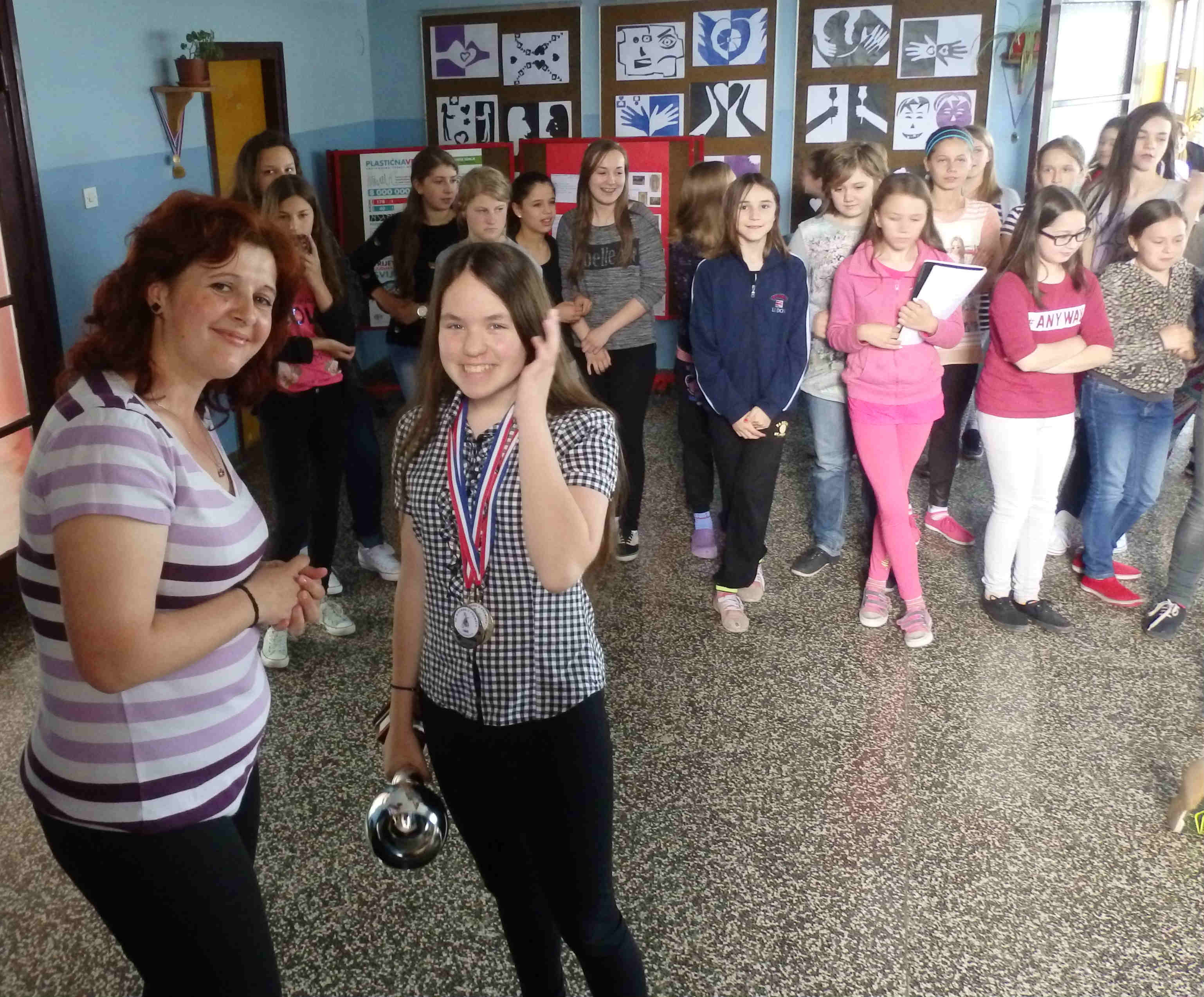 Helena se iz Pule osim sa zlatnom medaljom u pojedinačnoj konkurenciji djevojčica, vratila i sa srebrnom medaljom za ekipni poredak. Srebrna medalja podsjećat će i Patrika na ovo državno natjecanje, kao i njihove kolege iz ekipe Jelenu Kokšu iz OŠ Molve, te Hrvoja Kašika iz OŠ “Vladimir Nazor” iz Križevaca. Hrvoje će zajedno s Helenom na europsko u Češku jer je on bio drugoplasirani u konkurenciji dječaka. Na natjecanje u Češku još će i drugoplasirana Samanta Martinović, predstavnica OŠ Ivana Gorana Kovačića iz Starog Petrovog Sela iz Brodsko-posavske županije te njen školski kolega Lovro Grgić, pobjednik u konkurenciji dječaka. /Emanuela Koretić, 6. a, foto: Patrik Benčak i S.L./