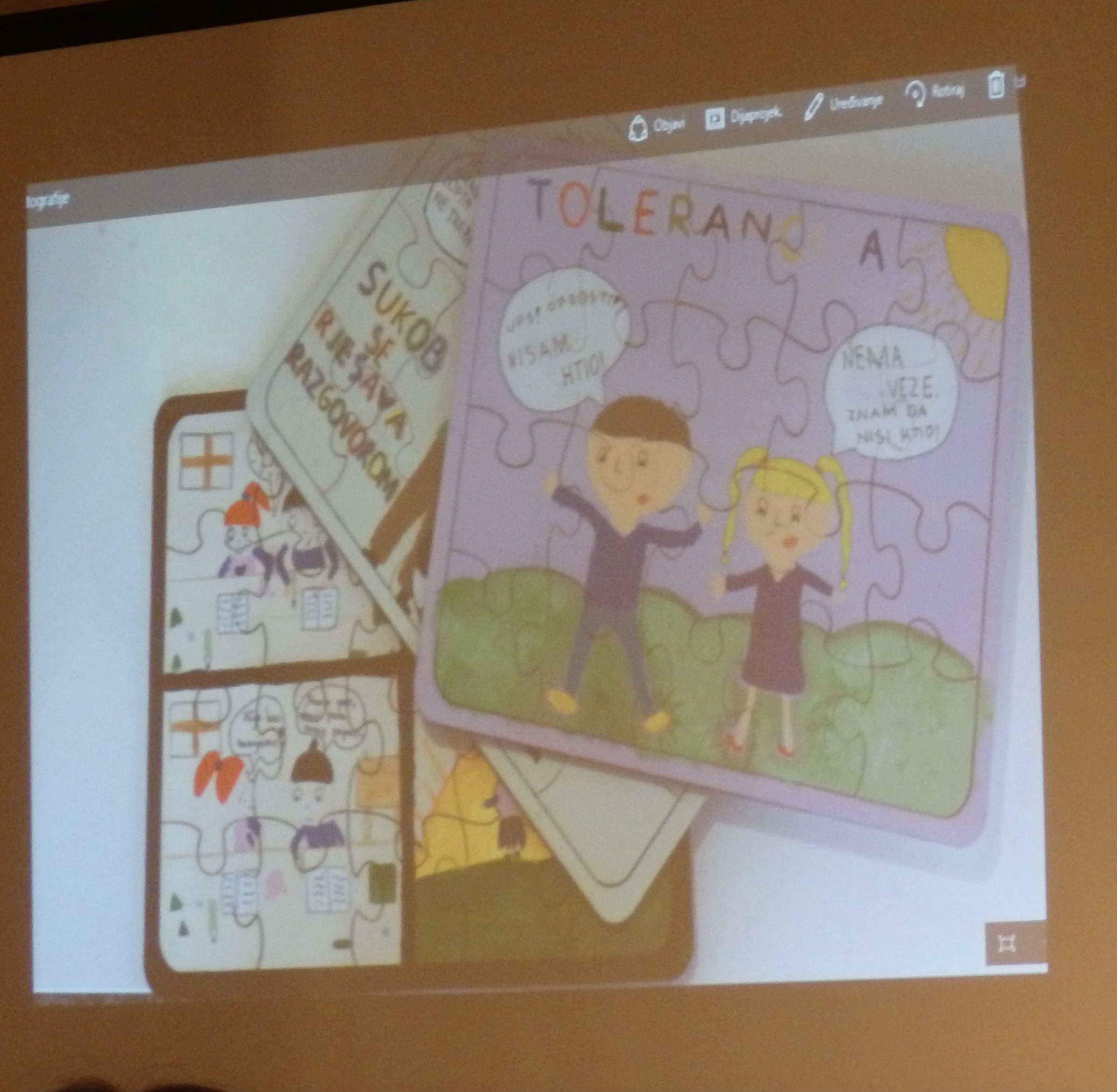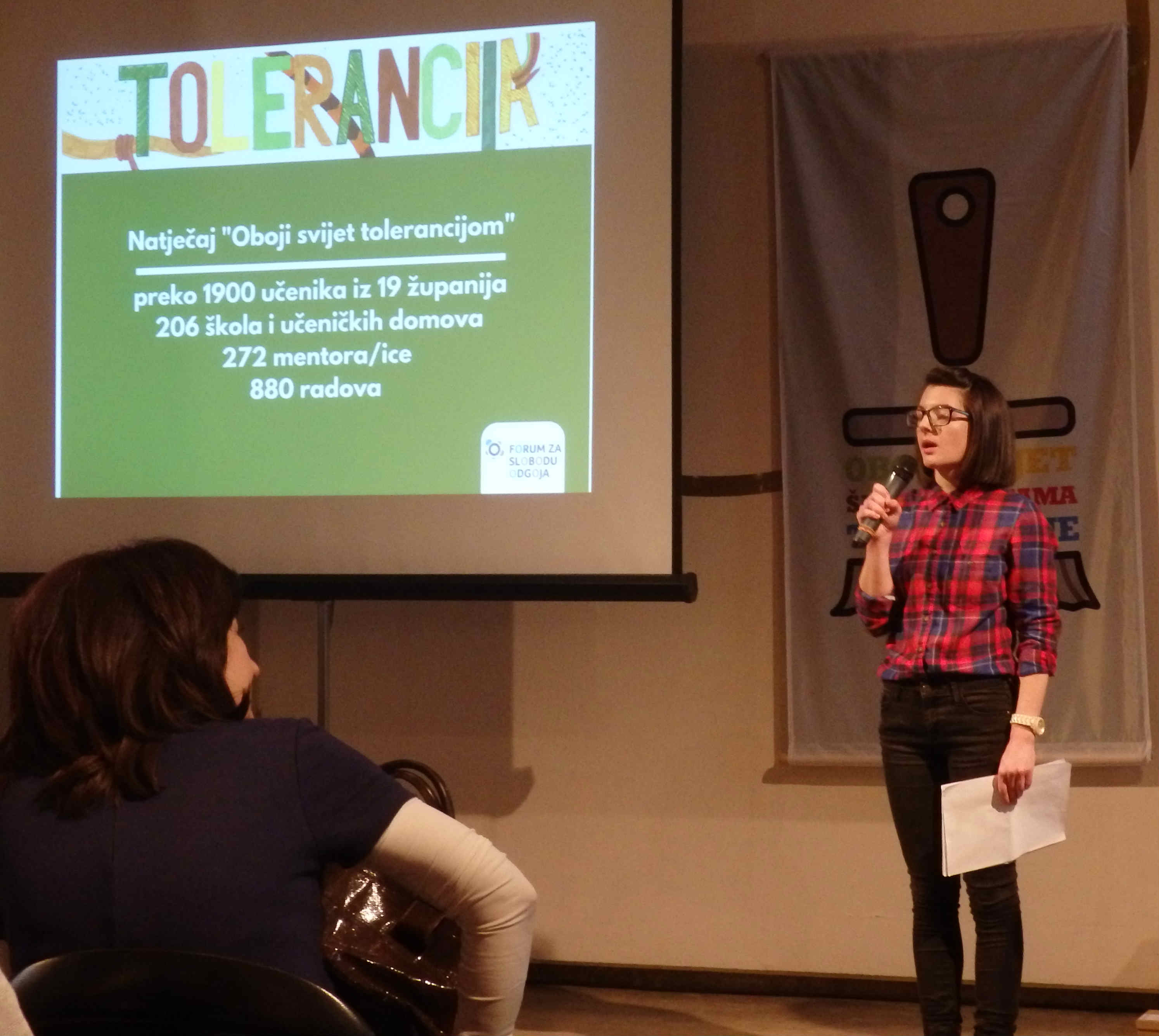 Na priredbi su predstavljeni svi nagrađeni radovi. Bilo je doista izvrsnih plakata, pjesama, filmova…. Sudeći po pljesku, svima nama osobito su se svidjeli nastupi dviju djevojaka u kategoriji Oboji svijet rječju. Barbara Vukas učenica OŠ Sesvete pročitala je dio svoje priče “Sloboda” o odnosu ljudi prema njoj dok je bolovala od leukemije. Druga djevojka, srednjoškolka Kristina Beganović iz Industrijske strojarske škole iz Zagreba, sve nas je ganula dijelom svog rada o problemima mladih majki. Primjeri netolerancije i tolerancije prema mladim majkama u priči “Požurila sam živjeti kao odrasla osoba” osvojili su povjerenstvo, a nas je osvojila i time što je na dodjelu nagradu dovela i svog nekoliko mjeseci starog sina.