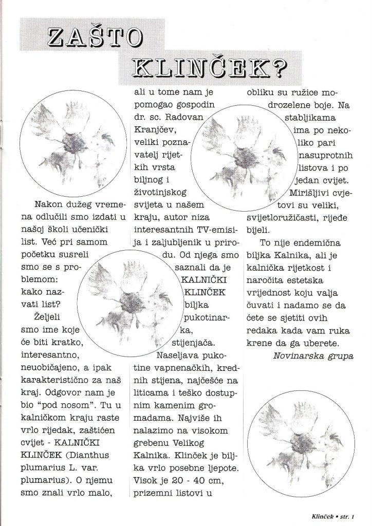 Kad smo razmišljali o imenu lista, htjeli smo da ime bude vezano uz naš kraj. Tako nam je palo na pamet da listu damo ime po ovoj rijetkoj, zaštićenoj vrsta cvijeta koji raste na obližnjem Kalniku. /Razgovarali: Klaudije Mažar i Mihaela Miklečić, 8.b; foto: S.L./
