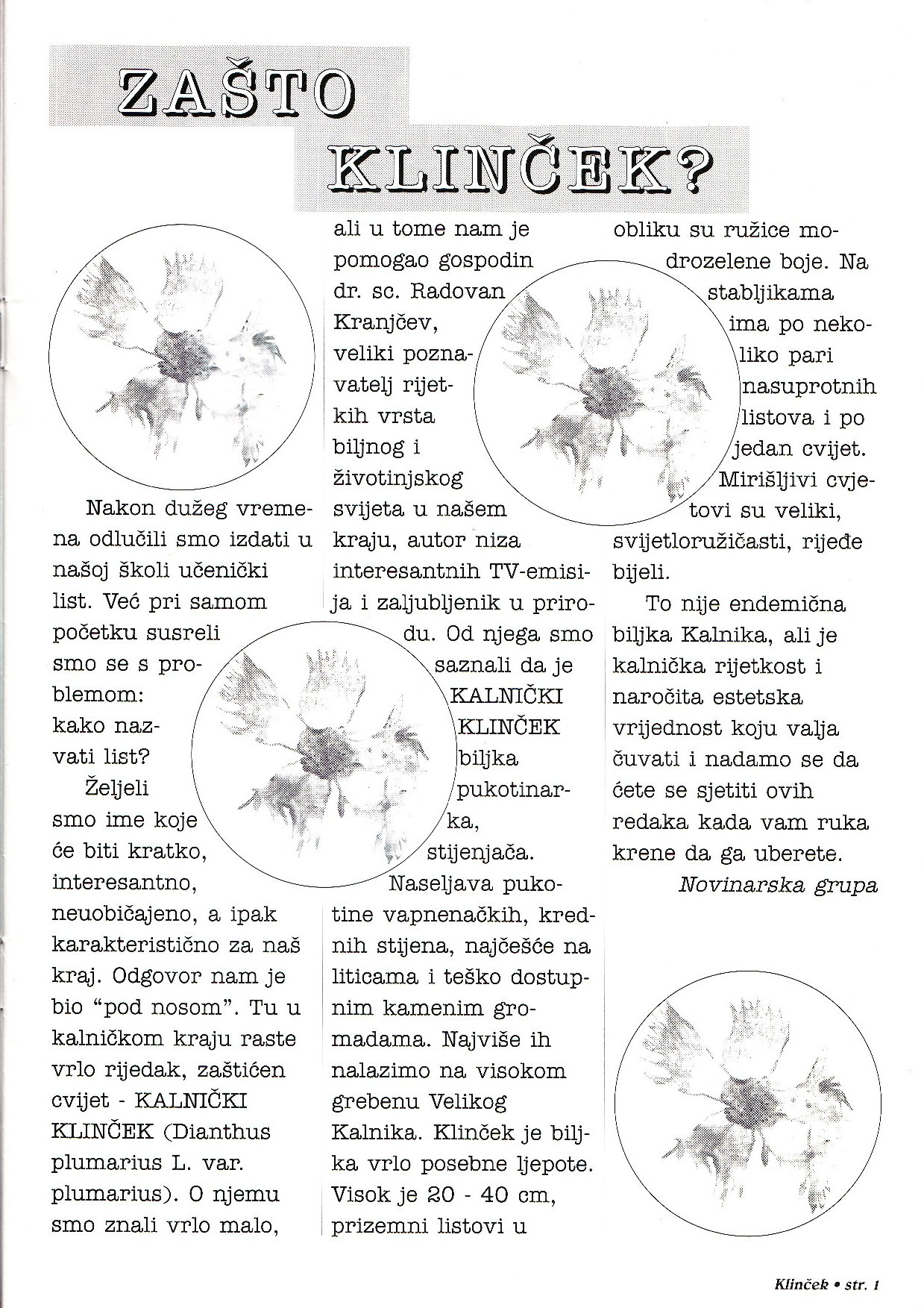 Kad smo razmišljali o imenu lista, htjeli smo da ime bude vezano uz naš kraj. Tako nam je palo na pamet da listu damo ime po ovoj rijetkoj, zaštićenoj vrsta cvijeta koji raste na obližnjem Kalniku. /Razgovarali: Klaudije Mažar i Mihaela Miklečić, 8.b; foto: S.L./