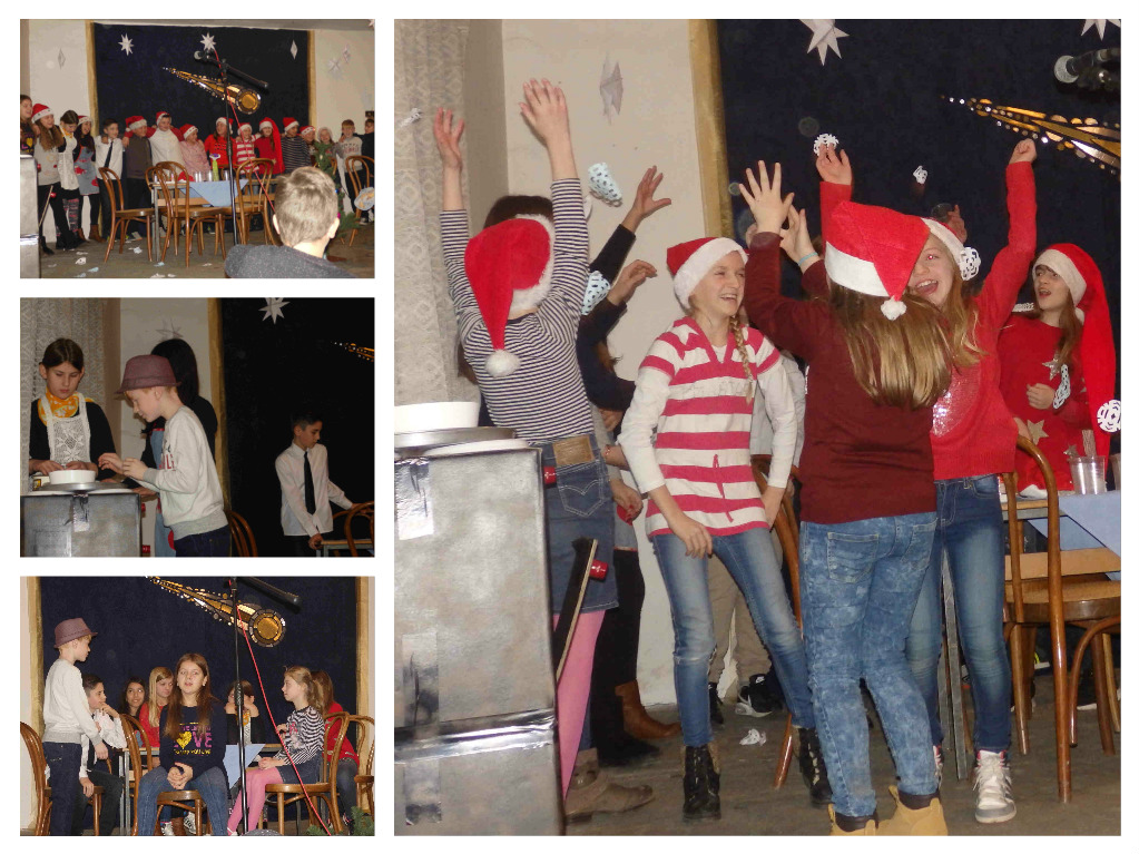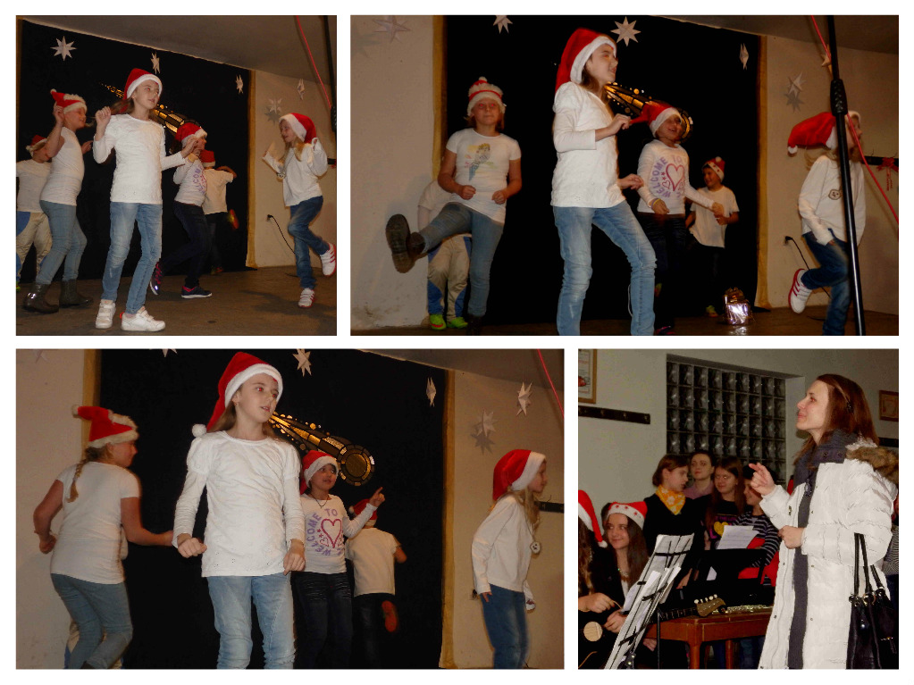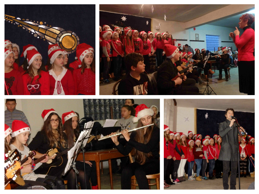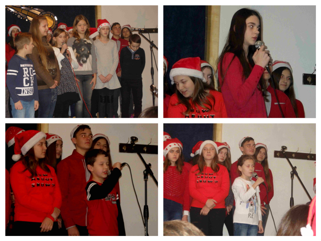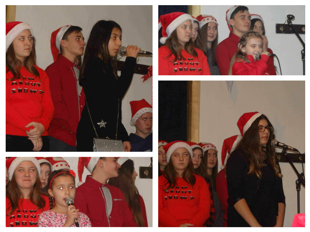 Crvene kapice u stilu Djeda Mraza bile su zaštitni znak našeg zbora, a i većina recitatora, glumaca i plesača koji su prejučer nastupali na božićnoj priredbi, održanoj u Vatrogasnom domu u Svetom Petru Orehovcu pred mnoštvom naših roditelja. Među njima je bila i Sanja Santo, majka naše učenice Magdalene, koja je zajedno sa svojom kćeri osmislila igrokaz „Božić u suvremeno doba“. Izveli su ga učenici 5.c „zaradivši“ buran pljesak publike.