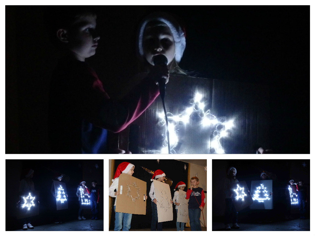 Uz puno crvene boje i božićnih pjesama, blagdanskoj atmosferi posebno su pridonijele točke PŠ Fodrovec i PŠ Gregurovec jer su bile popraćene svjetlosnim instalacijama. Ugođaj je upotpunila i scenografija. Pozornica je bila ukrašena velikom zvijezdom (kometom), načinjenom od svjetlucavog materijala na crnom platnu, a sa stropa dvorane visjele su brojne papirnate zvijezde. /Helena Kemenović, 5. c: foto: S.L./