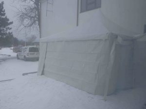 Popravljeno krilo na šatoru čime su spriječeni naleti vjetra, ali je učenicima i dalje vrlo hladno