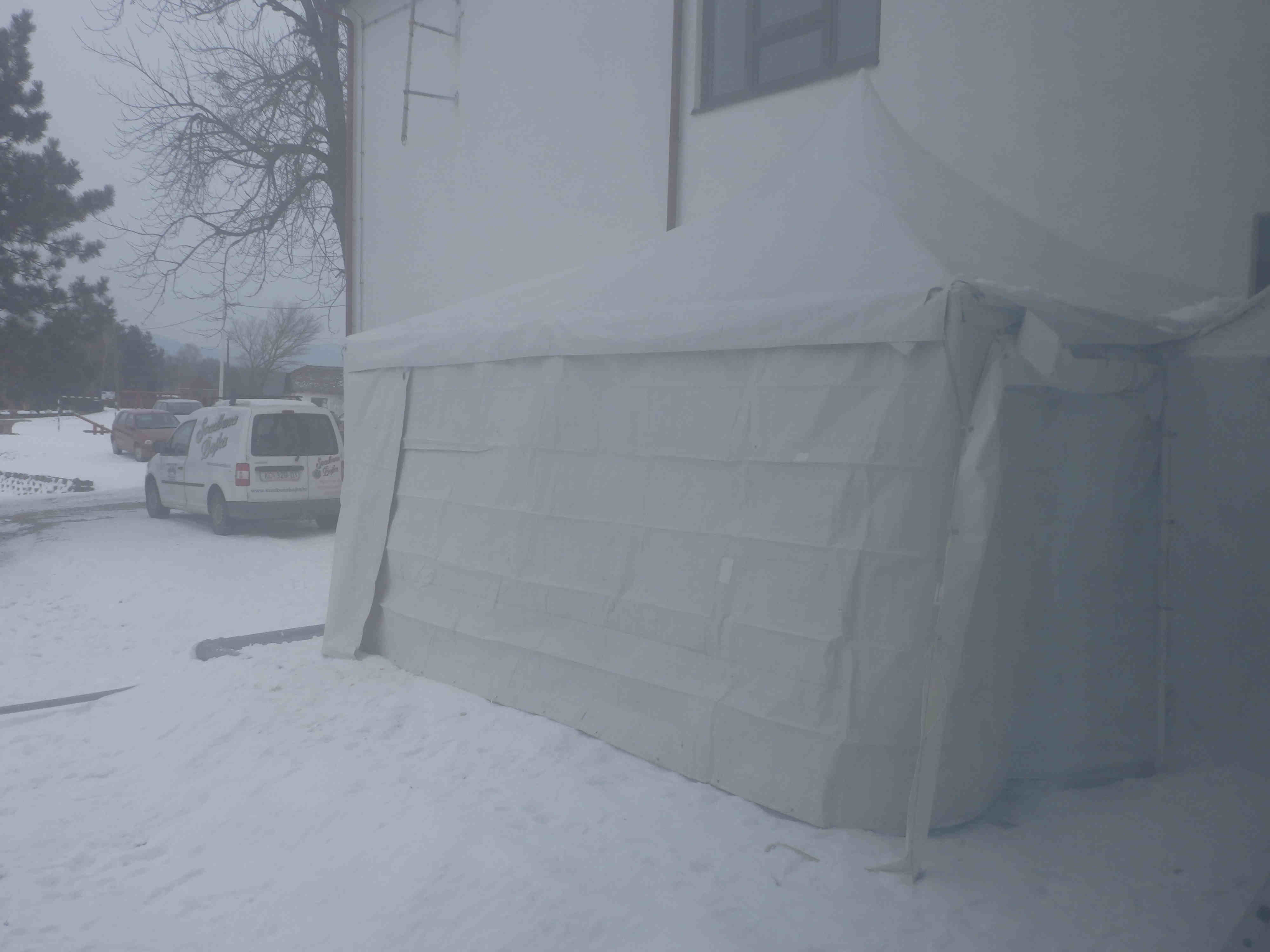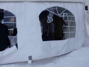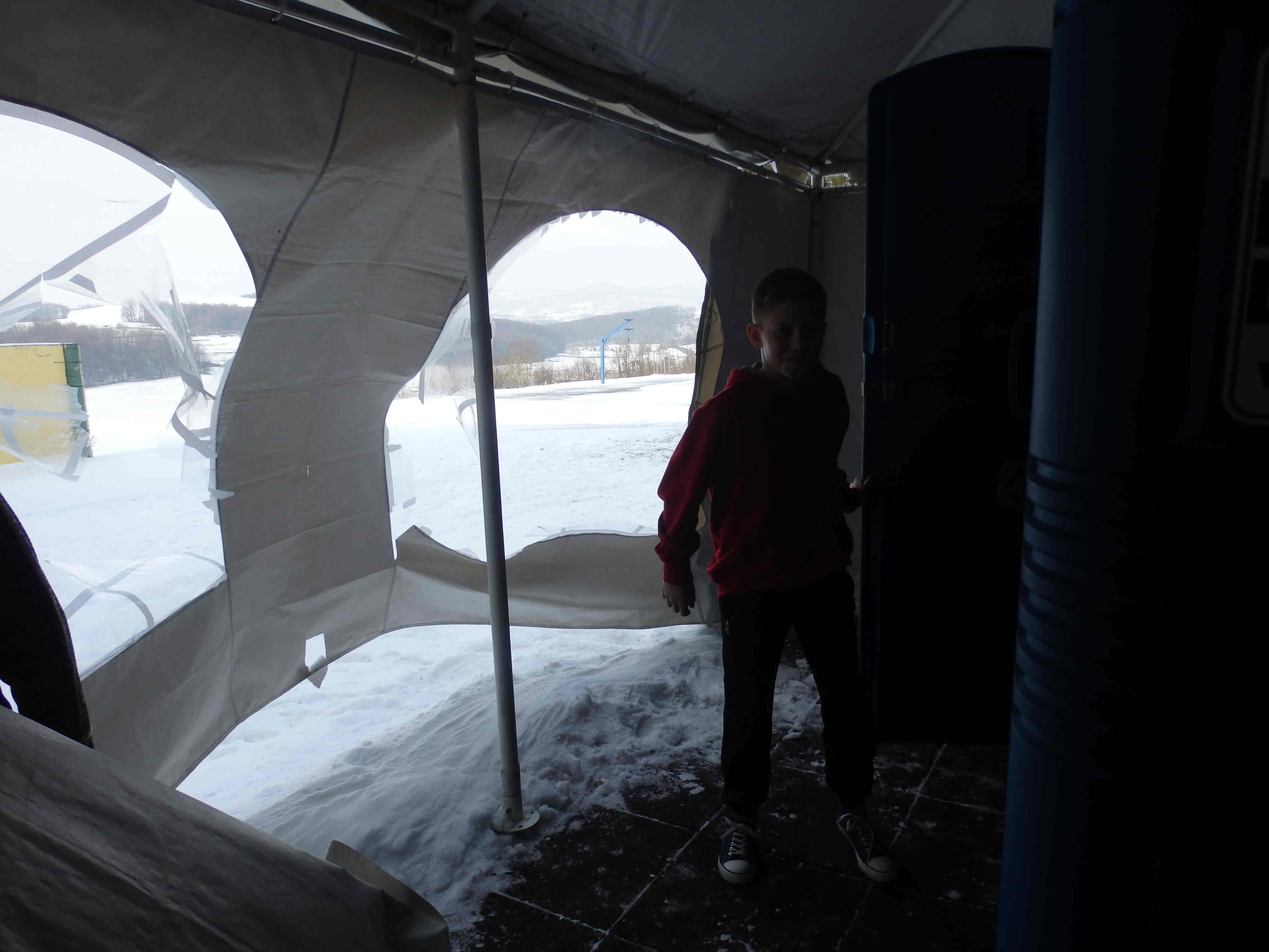 Srećom zahvaljujući intervenciji ravnatelja Stjepana Lučkog i brzom dolasku zaposlenika tvrtke koja nam iznajmljuje zahode, danas je postavljeno dodatno, nešto čvršće krilo na šator, pa vjetar više nije toliki problem. Ipak i dalje je jako hladno zato na zahode idemo samo u najvećoj nuždi.
