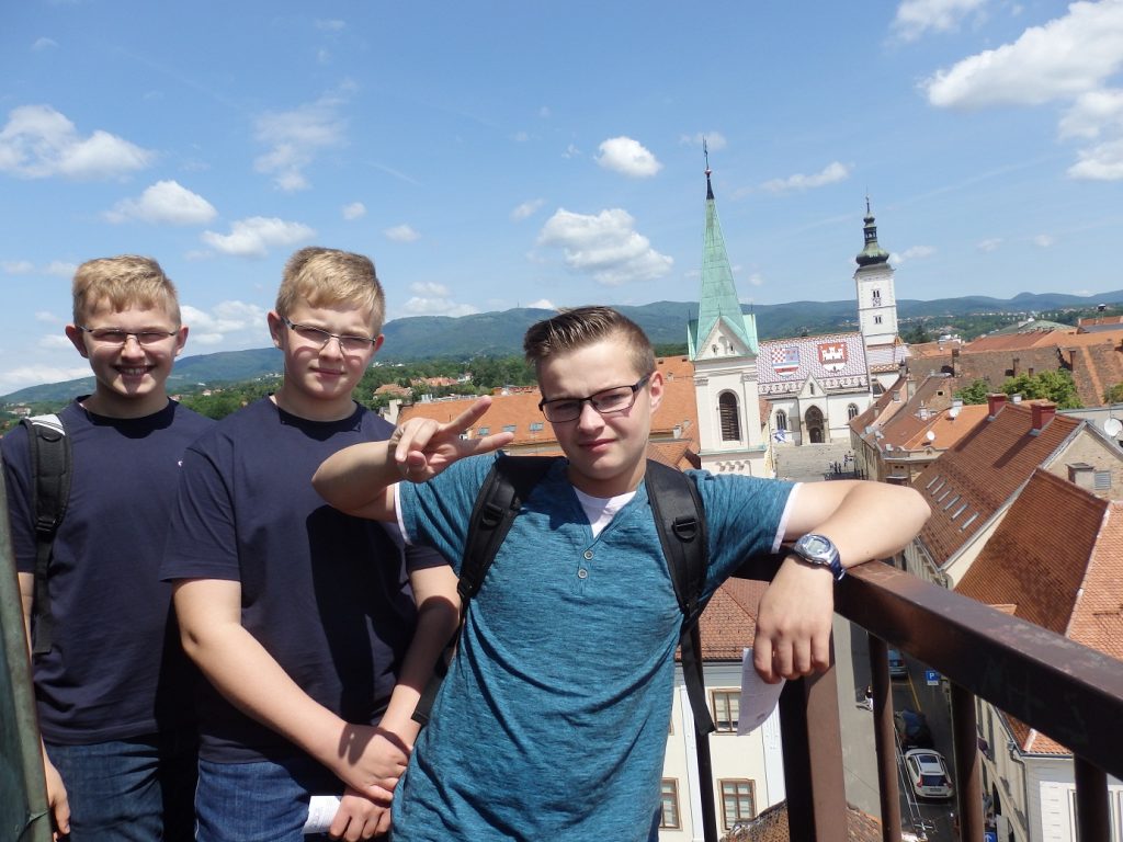 Nakon stresnog predstavljanja malo smo prošetali Gornjim gradom, a zatim smo nekoliko minuta promatrali panoramu Zagreba s vidikovca Kule Lotrščak. Osim po vidikovcu, ta je kula poznata i po tome što iz kule svakog dana točno u podne odjekuje pucanj topa. Taj je običaj započet od Nove godine 1877., kako bi se po topovskom pucnju mogli ravnati zvonari svih gradskih crkava.