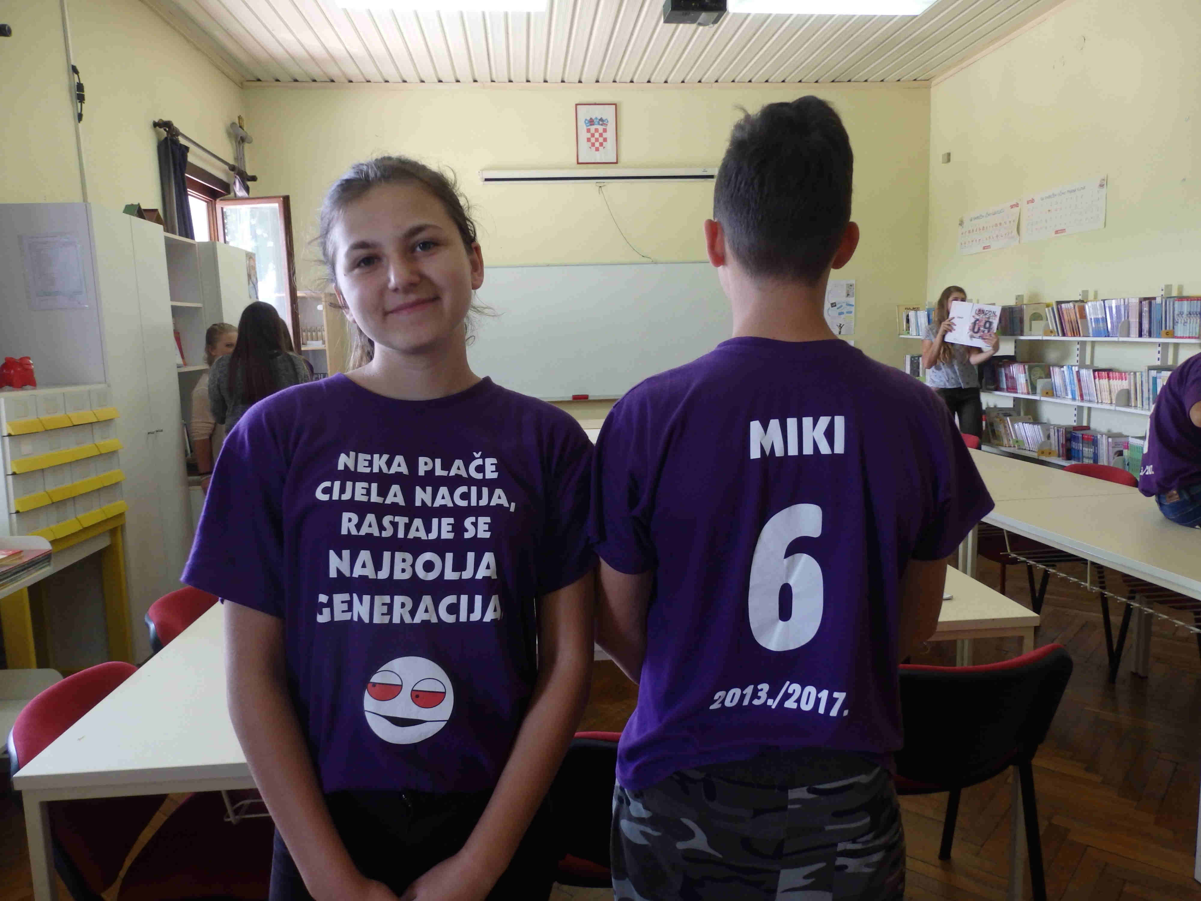 Ipak uz pjesmu i veselje, posebno među osmašima kojima je ovo bio i rastanak s osmogodišnjom školom, bilo je i puno suza. Na priloženim fotografijama pogledajte i kakve su porouke za oproštaj s osnovnom školom na svoje majice “stavili” naši osmaši. /foto:S.L./