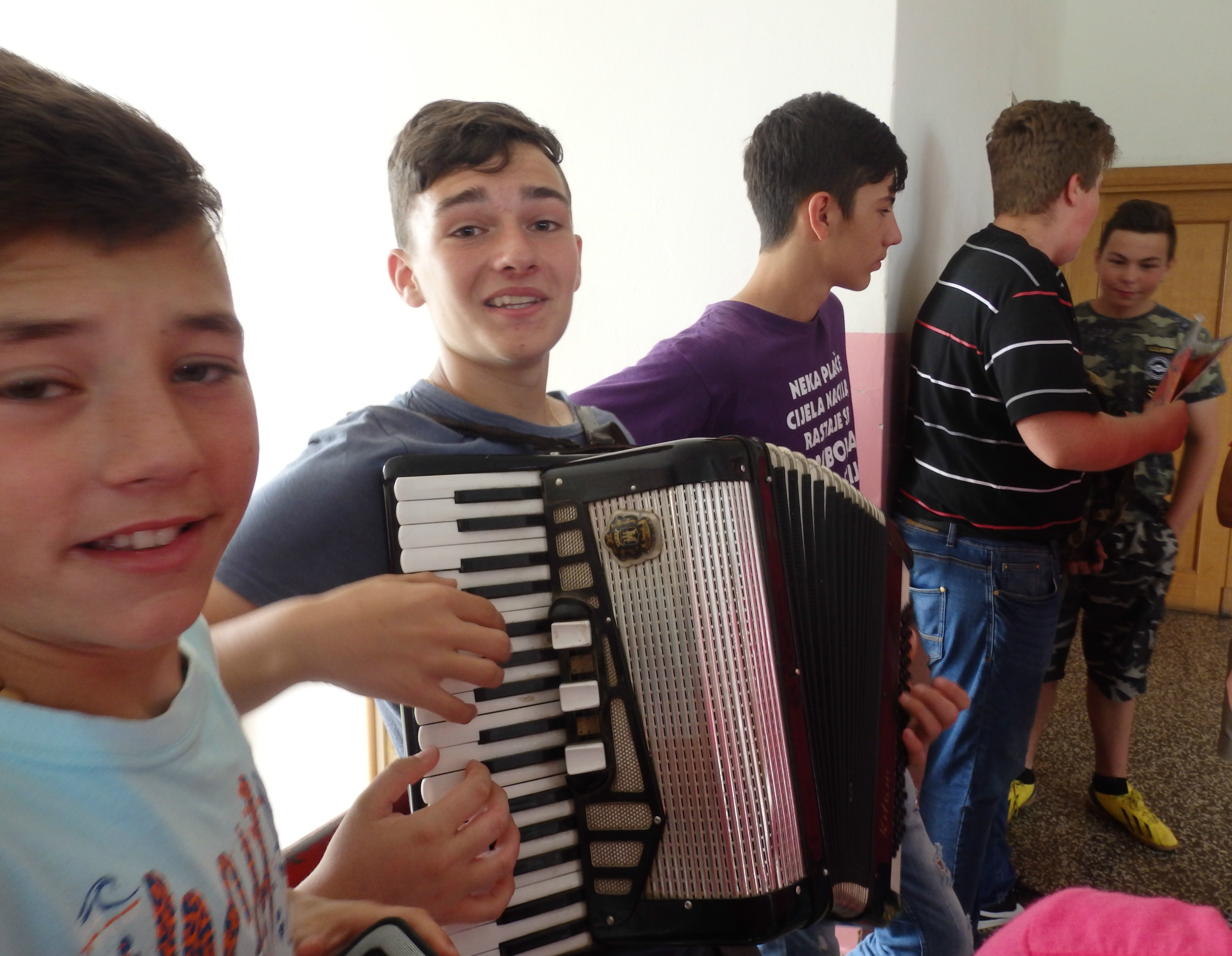 Posljednji dan nastave ove školske godine neki su učenici proveli odgovarajući kako bi popravili ocjene, no većina učenika provodila se uz pjesmu s našim harmonikašem Mihaelom Ivšakom. Povremeno je harmoniku preuzimao i tamburaš Klaudije Mažar te svirke i pjesme nije nedostajalo.