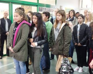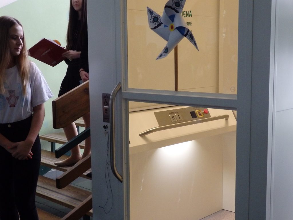 S našim domaćicama družile smo se i na priredbi u čast Dana škole. Na toj je priredbi zvijezda bila i Eni Sečan, učenica koja se od ove školske godine školom moće jednostavnije kretati jer je škola ugradila lift. Svečano otvorenje lifta organizirano je nakon priredbe. /Magdalena Santo, 6.c; foto: Helena Kemenović, S.L./