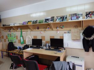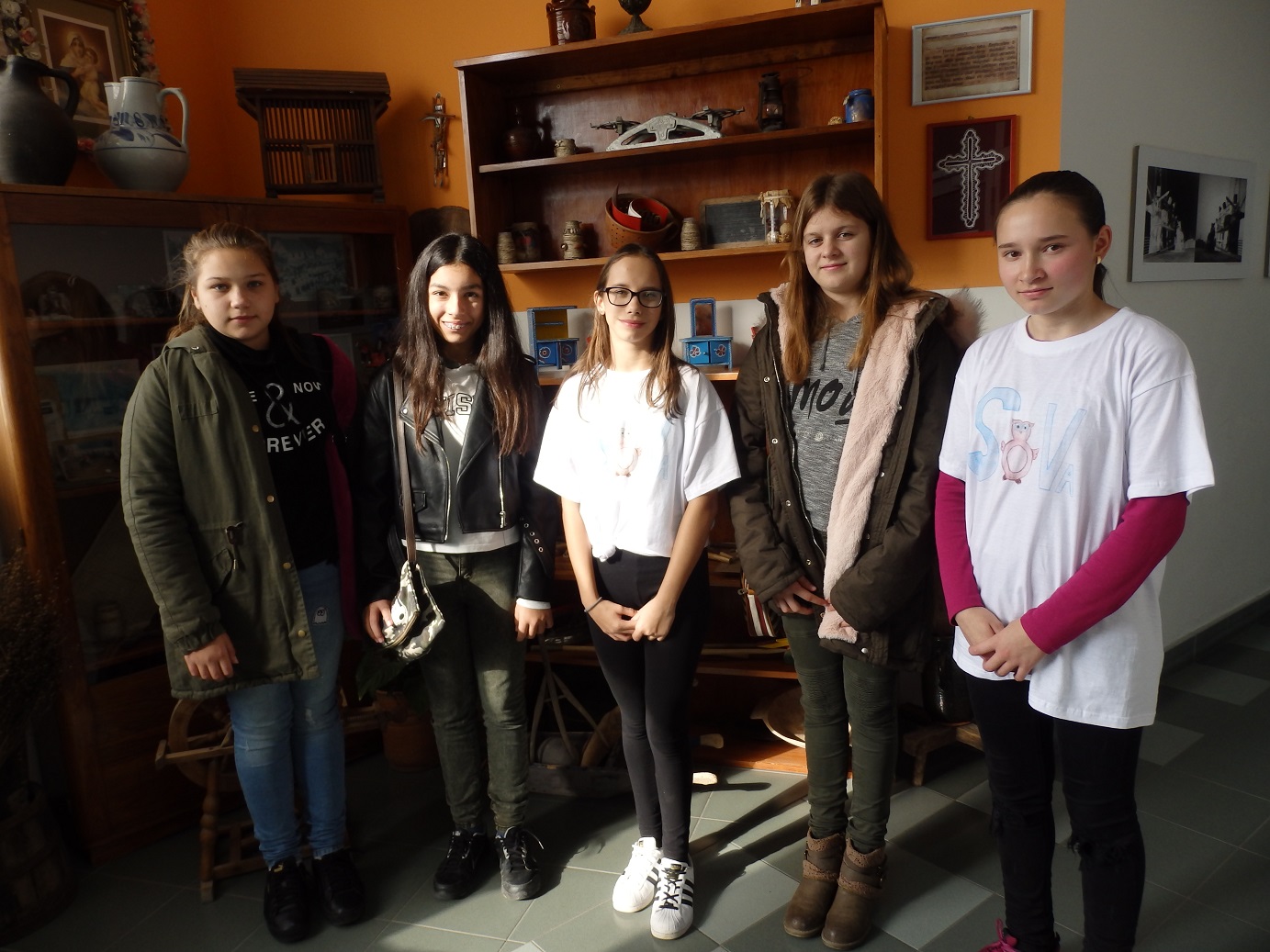 Navedene izložbe razgledali smo u društvu naših domaćica Hane i Sanele. One su “Sove” odnosno članice Sobočke organizacije volontiranja. Provele su nas i svojom lijepom školom u kojoj nam se osobito svidio prostor njihove filmske grupe koju zajednički vode učiteljice Nikolina Hampamer i Iva Mihalic. Da, dobro ste pročitali, oni imaju prostor namijenjen samo filmskoj skupini i u njoj dva računala samo za filmaše.