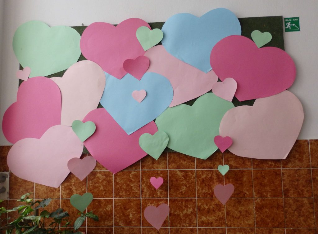 Za klauna na vratima učionice predškolaca “odgovorni” su učiteljica Štefica Katanović i njeni predškolci, a za klaunove u holu učiteljica likovnog Kristina Vuković. Ona je nedavno napravila i srca koja na polukatu najavljuju Valentinovo, još jedno veselo događanje kojeg ćemo obilježiti idući tjedan. /Lorena Benčak, 5. b; foto: S.L./