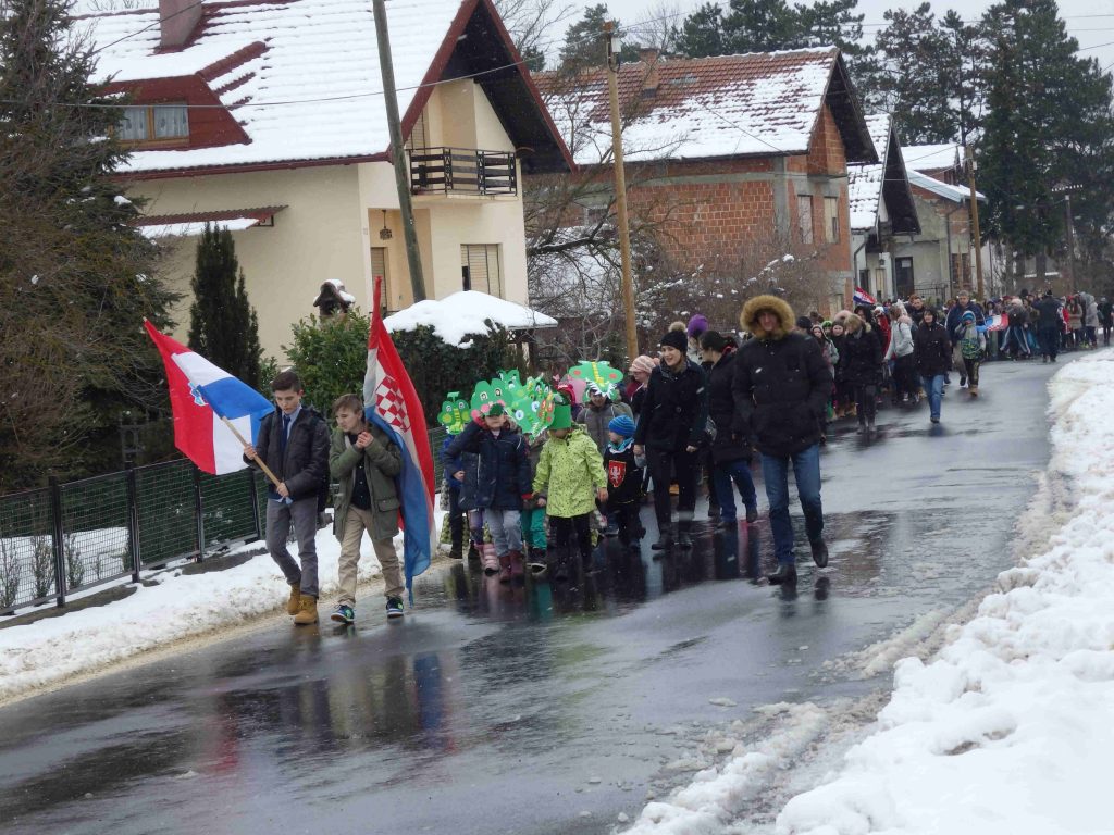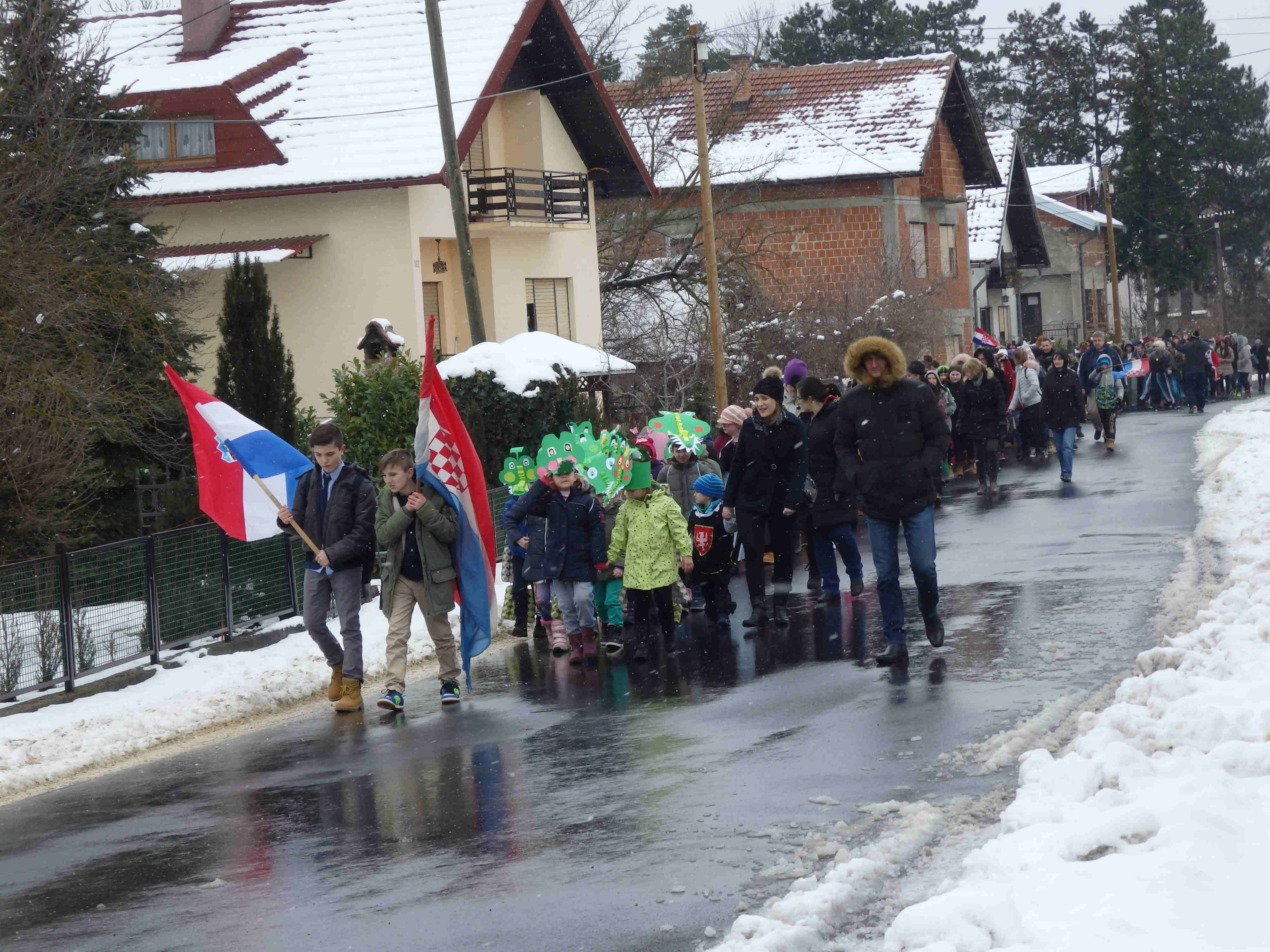 Veseli barjaktari predvodili su danas kroz centar Svetog Petra Orehovca maskiranu povorku. U povorci je bilo svatova, trolova, klaunova, rokera, vještica…, a najljepši su bili oni najmanji, naši predškolci. Oni su bili krokodili. Imali su maske od kutija za jaja i papira. Maske su im nedavno na radionici izradili njihovi roditelji i učiteljica Štefica Katanović.