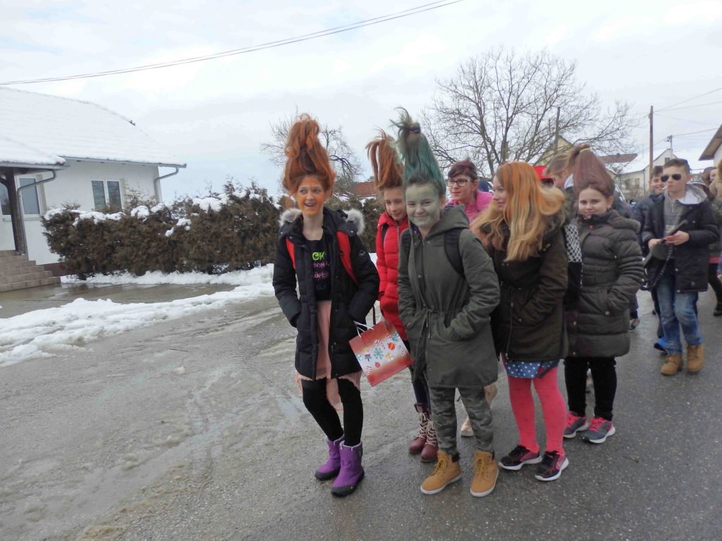 U povorci maškara isticalo se i nekoliko učenica 6. a koje su imale upečatljive frizure. Napravile su ih koristeći se bocama i sprejem za kosu.