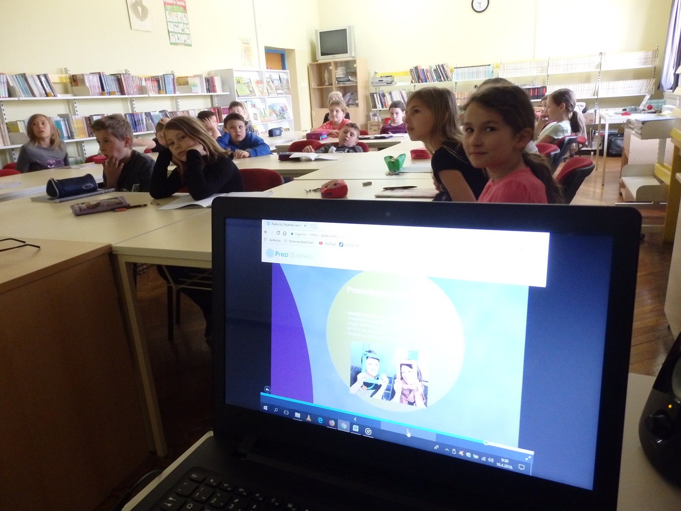 Nakon sata o radiju snimili smo i kratku radijsku emisiju u kojoj govorimo što smo naučili o radiju. Naša emisija o radiju i Prezi prezentacija o radiju naše knjižničarke dostupne su ispod teksta./Lara Trušček, Karla Kos 3. razred; foto: S. L./