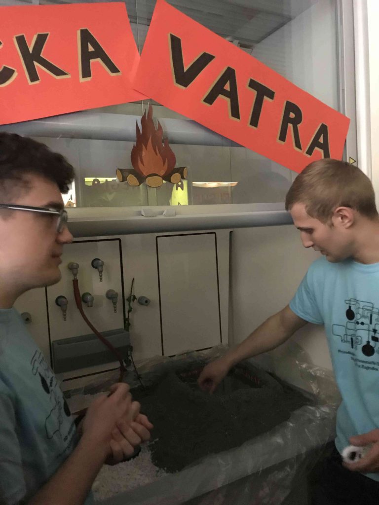 Od intenzivnih mirisa različitih kemijskih tvari nekima od nas poslije baš nije bilo dobro, ali bilo je vrlo zanimljivo gledati pokuse koji djeluju poput čarolije. Ipak vatra koja gori u vodi ili grumenčići koji se u vodi pretvaraju različite oblike nisu bile čarolije već znanost. To su bili pokusi koje omogućava poznavanje kemije, a izvodili su ih studenti kemijskog fakulteta. Mi smo te i mnoge druge interesantne pokuse vidjeli prilikom manifestacije Dan i noć na PMF-u (Prirodoslovno matematičkom fakultetu).