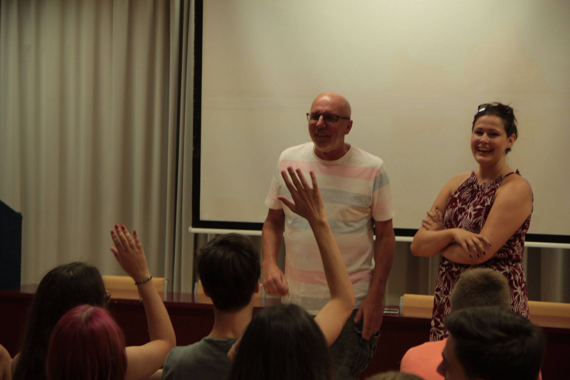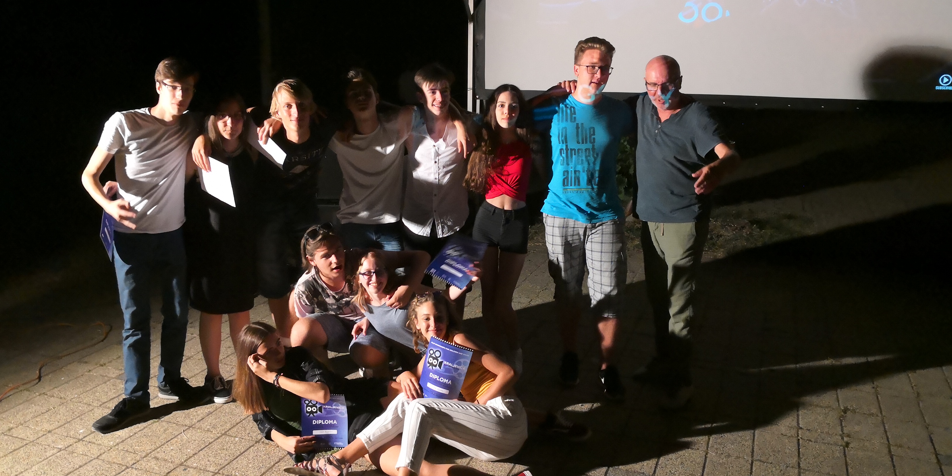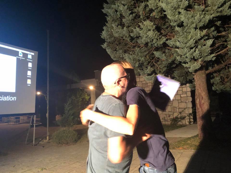 No, naš simpatični voditelj nije bio s nama samo za vrijeme radionice već je bio raspoložen i za druženja u slobodno vrijeme pa sam ja s njim odigrao nekoliko partija stolnog tenisa. Naravno, dio slobodnog vremena koristio sam i za kupanje. Ponajviše sam se družio s ekipom iz Križa. Na radionici nas je bilo 51. Desetak sudionika stiglo je ih Amerike, a mi ostali bili smo iz raznih dijelova Hrvatske. Šarolika ekipa stvaratelja i ljubitelja filma i s ostalih radionica ( organizirane su bile su još i radionice animiranog, igranog i dokumentarnog filma) , uvijek je bila spremna za druženje i akciju. Nekima je akciju podrazumijevalo i crtanje, pa sam se kući vratio sa svojim portretom naslikanim vodenim bojama.