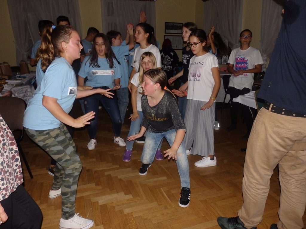 Najviše smo se zbližili posljednjeg dana razmjene kad je nakon radionica organiziran ples u vatrogasnom domu u Dzikowiecu. Za izvrsnu atmosferu na plesu zaslužan je DJ Giuseppe Di Pinto, učitelj glazbe iz talijanskog Erasmus+ tima. On je birao izrazito plesne španjolske i talijanske pjesme, a dokazao se i kao vrstan plesač. Ipak na plesnoj pozornici, njega i sve ostale zasjenila je naša Iva Šantić, čije su plesne korake svi pokušavali imitirati. U vrijeme plesa neki od nas su pred domom primijetili i Huberta Drapalu te Kacpera Hahna, bivše učenike škole u Dzikowiecu, koji su bili na razmjeni u Hrvatskoj u ožujku. Šteta što nam se nisu pridružili na plesu, ali uspjeli smo im isporučiti pozdrave prijatelja s razmjene u Hrvatskoj.
