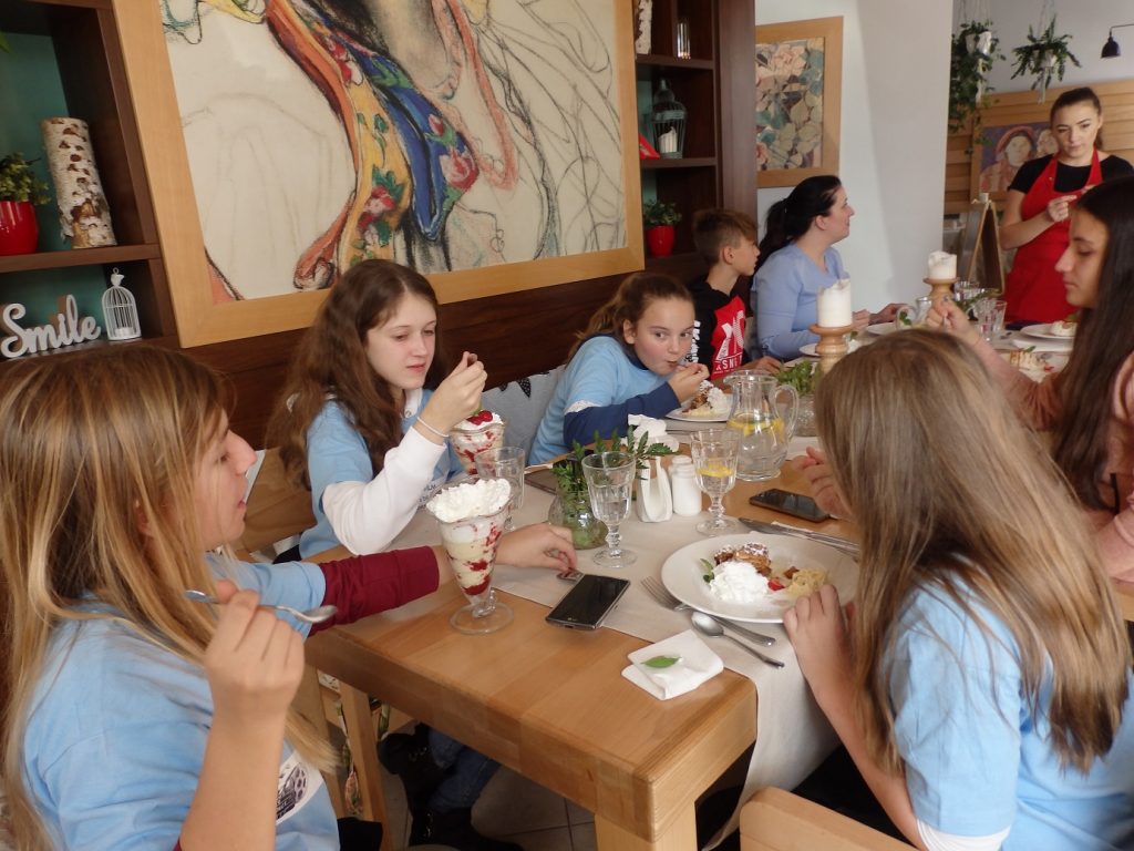 Usred vatrenog plesa imali smo priliku degustirati izvrsnu Erasmus+ tortu, a prije i poslije torte stolovi u vatrogasnom domu su bile puni ukusne hrane. Mogli smo birati razne delicije od malih sendviča s kozicama, različitim sirevima, salamama i šunkom preko ukiseljenih haringa s lukom do glavnog mesnog jela s tjesteninom. Bilo je vrlo ukusno i obilno i zato je puno te izvrsne hrano ostalo. I svih ostalih dana razmjene izvrsno smo jeli. Svaki obrok bio je u nekom drugom restoranu. Dok ćemo indijski restoran u gradu Łódźu pamtiti po izrazito ljutoj hrani, restoran u Konfitura u Rzeszówu dojmio nas se zbog svojih neobičnih slatko slanih kombinacija. Tamo su se neki od nas odlučili kušati i salate s jagodama i kozjim sirom, losos s umakom od naranče ili pak poljske perogi – tradicionalnu tjesteninu punjene različitim nadjevima.