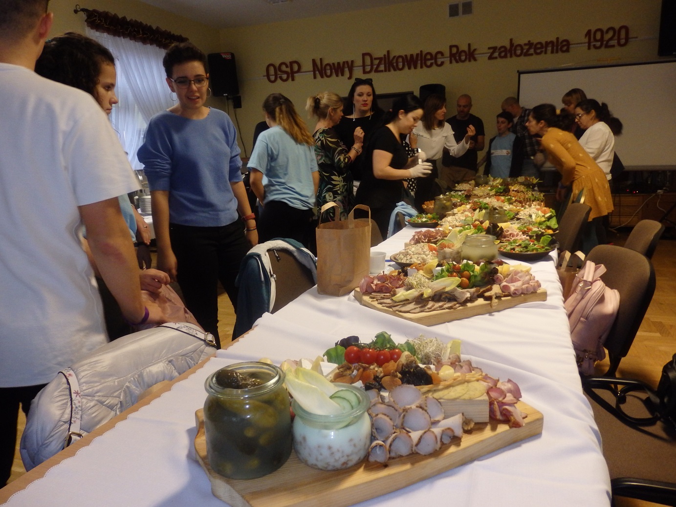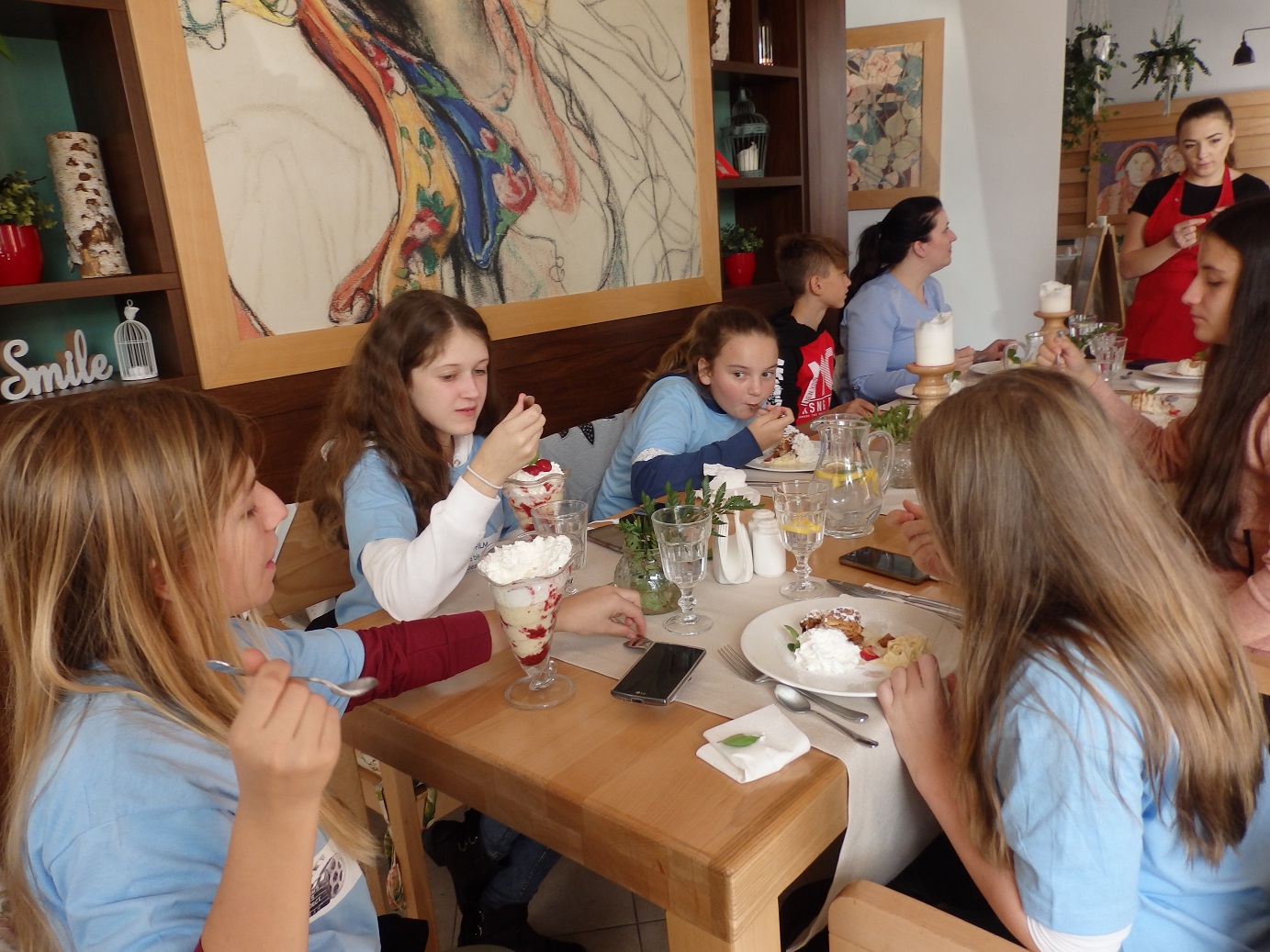 Usred vatrenog plesa imali smo priliku degustirati izvrsnu Erasmus+ tortu, a prije i poslije torte stolovi u vatrogasnom domu su bile puni ukusne hrane. Mogli smo birati razne delicije od malih sendviča s kozicama, različitim sirevima, salamama i šunkom preko ukiseljenih haringa s lukom do glavnog mesnog jela s tjesteninom. Bilo je vrlo ukusno i obilno i zato je puno te izvrsne hrano ostalo. I svih ostalih dana razmjene izvrsno smo jeli. Svaki obrok bio je u nekom drugom restoranu. Dok ćemo indijski restoran u gradu Łódźu pamtiti po izrazito ljutoj hrani, restoran u Konfitura u Rzeszówu dojmio nas se zbog svojih neobičnih slatko slanih kombinacija. Tamo su se neki od nas odlučili kušati i salate s jagodama i kozjim sirom, losos s umakom od naranče ili pak poljske perogi – tradicionalnu tjesteninu punjene različitim nadjevima.