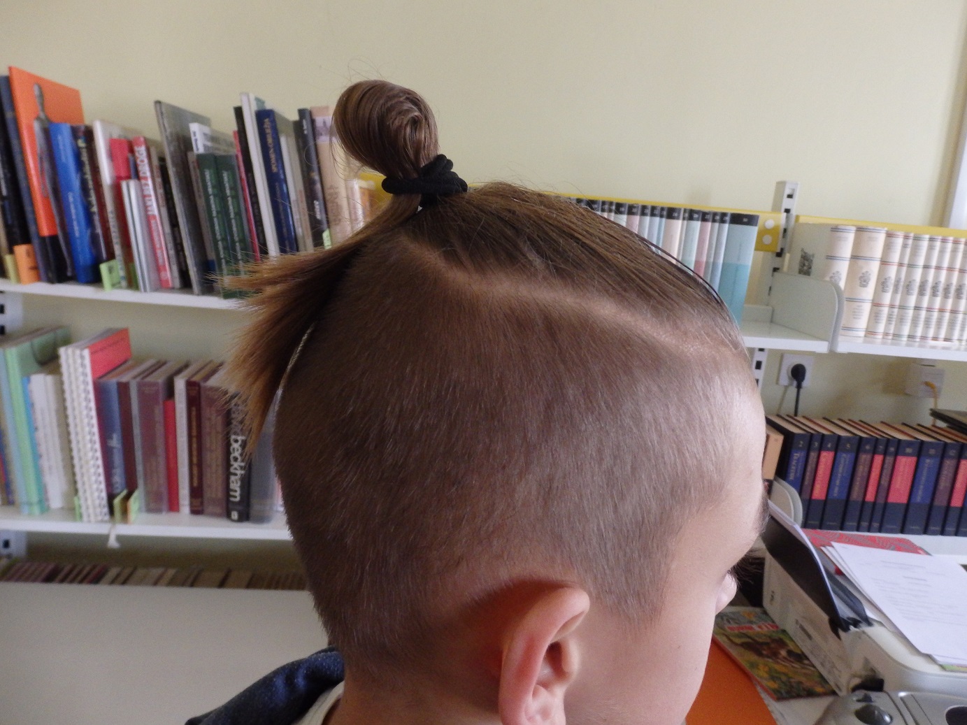 Među njima su dvojica petaša. Jedan od njih ima kratkoošišanu kosu, ali odostraga je ostavio poduži repić.  Kaže da takvu frizuru nosi još predškole. Predložilamu je mama rekavši da pristaje njegovom obliku lica. Frizura mu se svidjela i otad se stalno tako šiša.