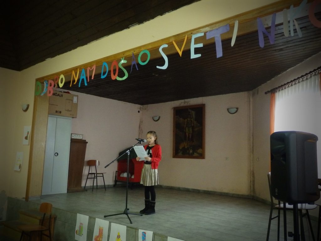 Gotovo 45 minuta trajala je priredba u čast Svetom Nikoli održana danas u Vatrogasnom domu u Miholcu. To ne bi bila važna činjenica za isticanje da cijeli program nisu pripremili učitelji i učenici PŠ Miholec, trećeg razreda matične škole i predškolci. Predškolci su izveli dvije pjesmice, a sve ostale igrokaze, recitacije i plesove izveli su Miholčani i trećaši.