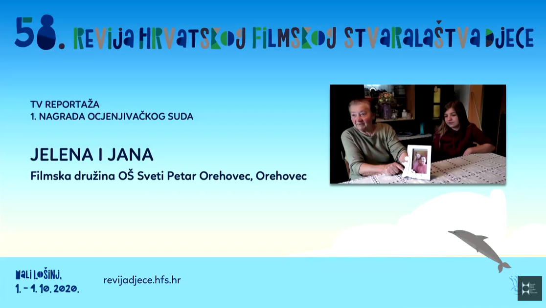 Revija je održana u Malom Lošinju od 1. do 4. listopada, no zbog korona virusa nisu joj prisustvovali učenici čiji su filmovi pozvani na Reviju. U Malom Lošinju boravili su samo članovi žirija i ekipa zadužena za video streaming otvaranja i zatvaranje Revije. Na Reviju je ove godine, od ukupno 245 prijavljenih filmova, u natjecateljski program uvršteno njih 86. Osim “Jelene i Jane” našu filmsku grupu predstavljao je još i film “Volonterski kamp 2019. – Križevci”, autora Marka Puškara, Karle Ferenčak i Mihaele Pacur. Svi filmovi uvršteni u natjecateljski program mogu se vidjeti do utorka 6. listopada, na mrežnoj stranici HRVATSKOG FILMSKOG SAVEZA.