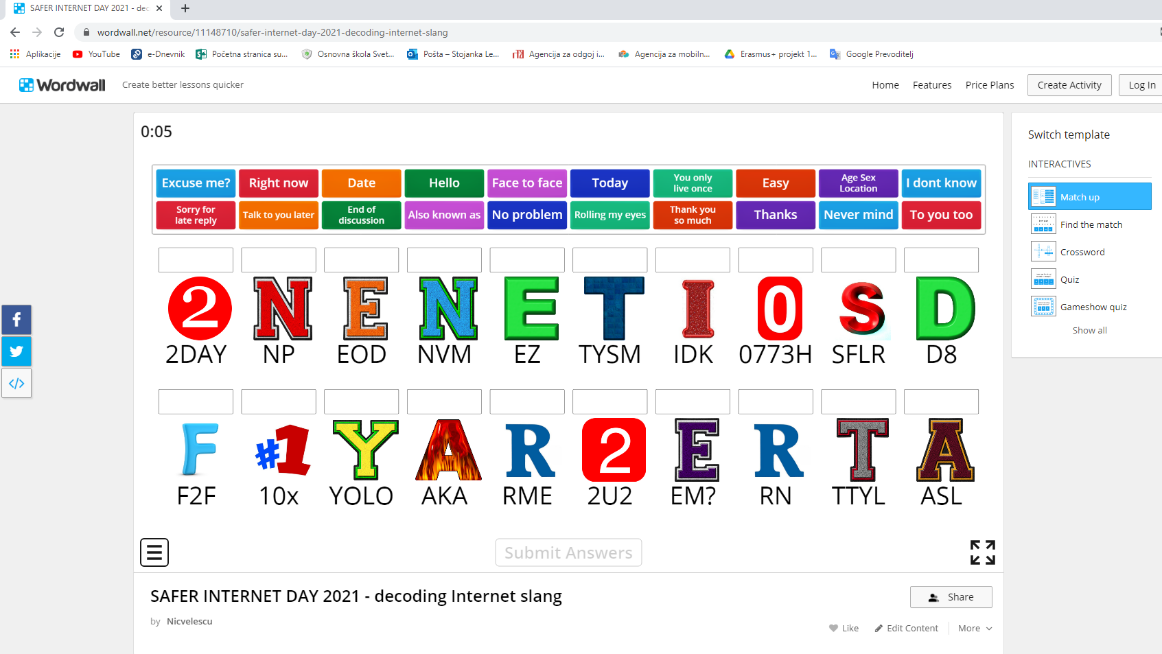 Na video konferenciji tim iz Rumunjske predstavio nam je i prezentaciju o slengu koji se koristi u društvenim mrežama. Oni su napravili i igricu u web alatu WORDWALL i kviz o toj temi, a i vi ih možete zaigrati OVDJE i provjeriti znate li neke od najčešće korištenih sleng termina na društvenim mrežama. /Karla Kos 6. a; foto: preslika ekrana video konferencije/