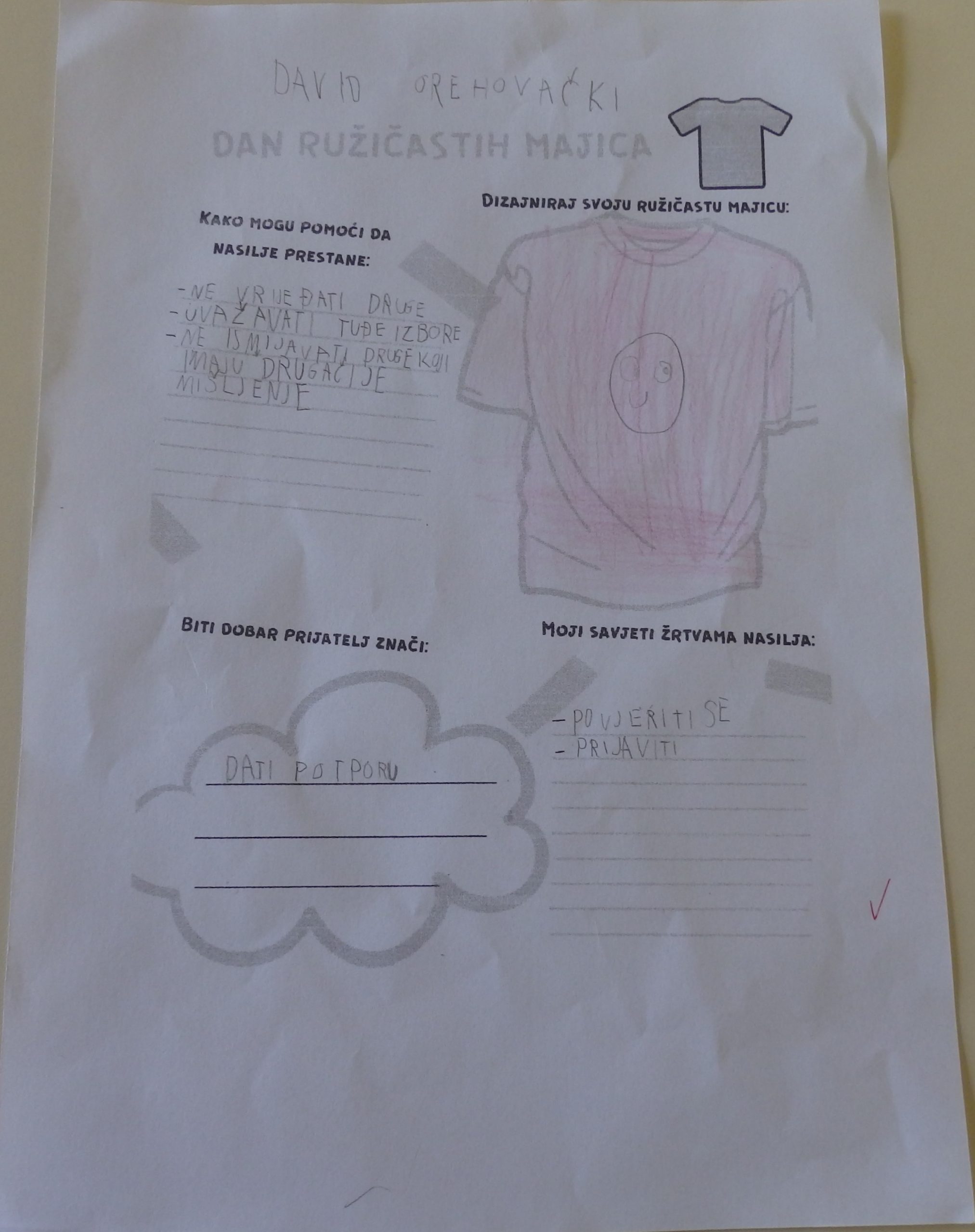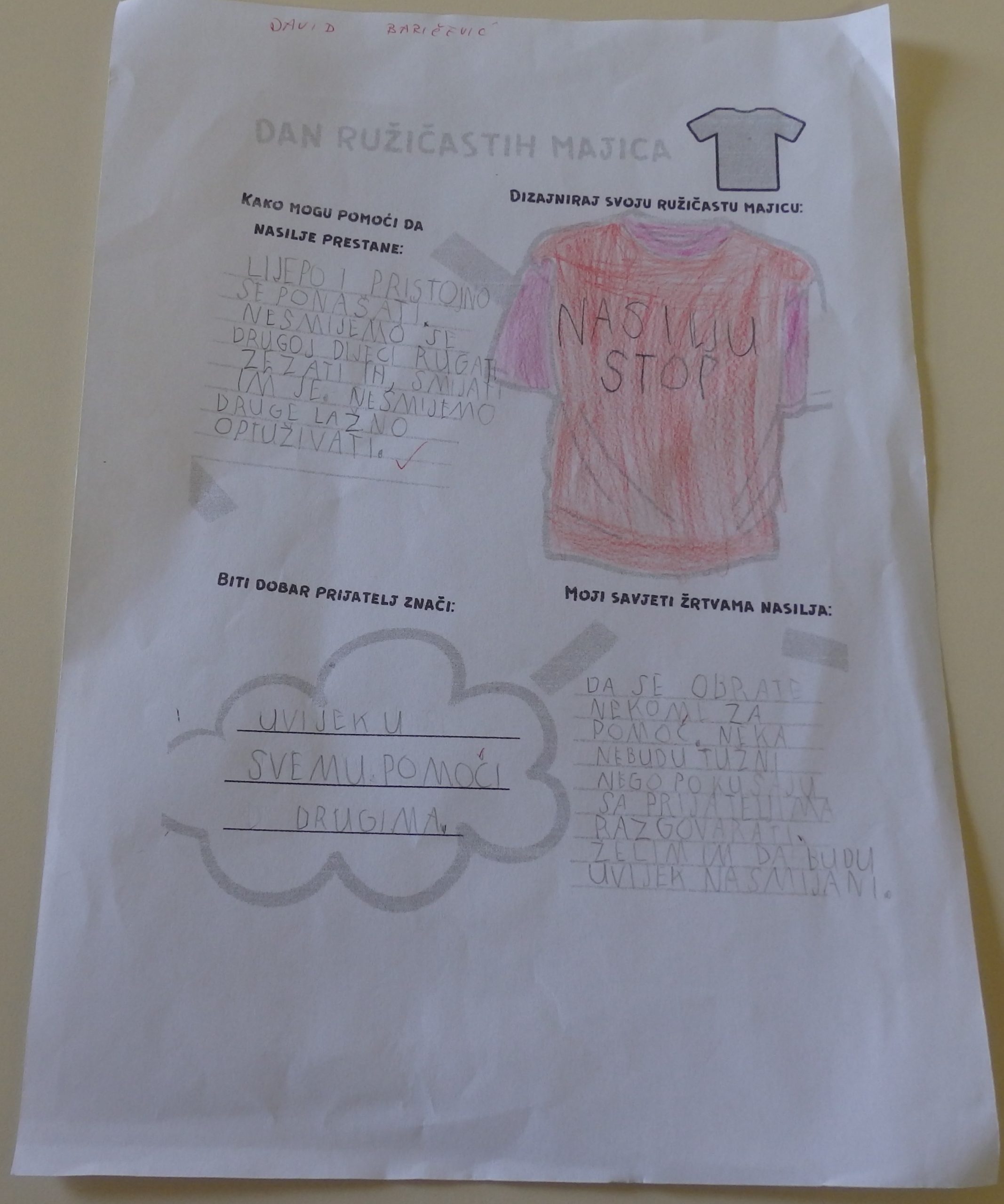 Dan ružičastih majica kao simbol borbe protiv vršnjačkog nasilja krenuo je iz Kanade 2007. Kod nas u Hrvatskoj Dan ružičastih majica obilježava se od 2017. kao nacionalni dan borbe protiv vršnjačkog nasilja. Danas smo i mi u školama odjenuli ružičaste majice i govorili o vršnjačkom nasilju.