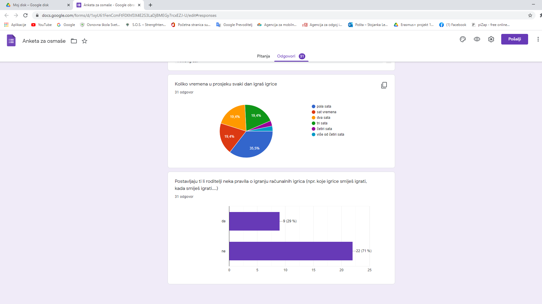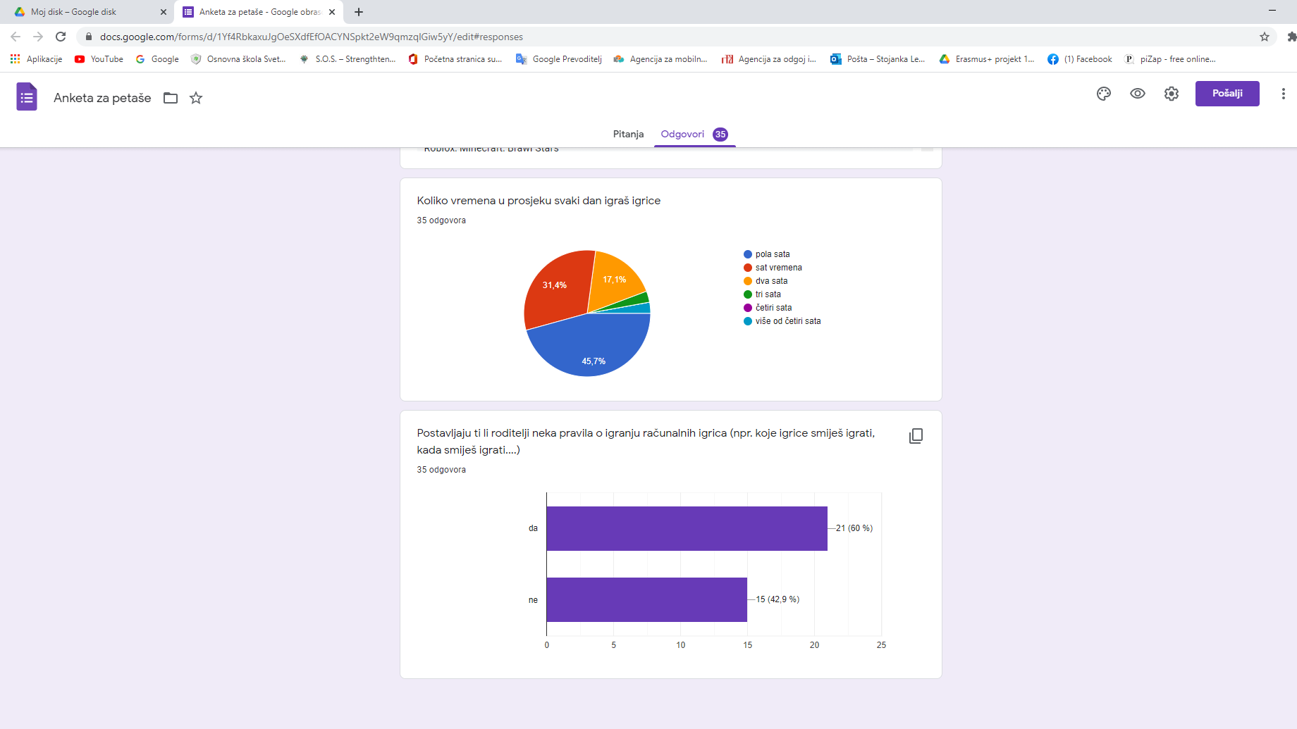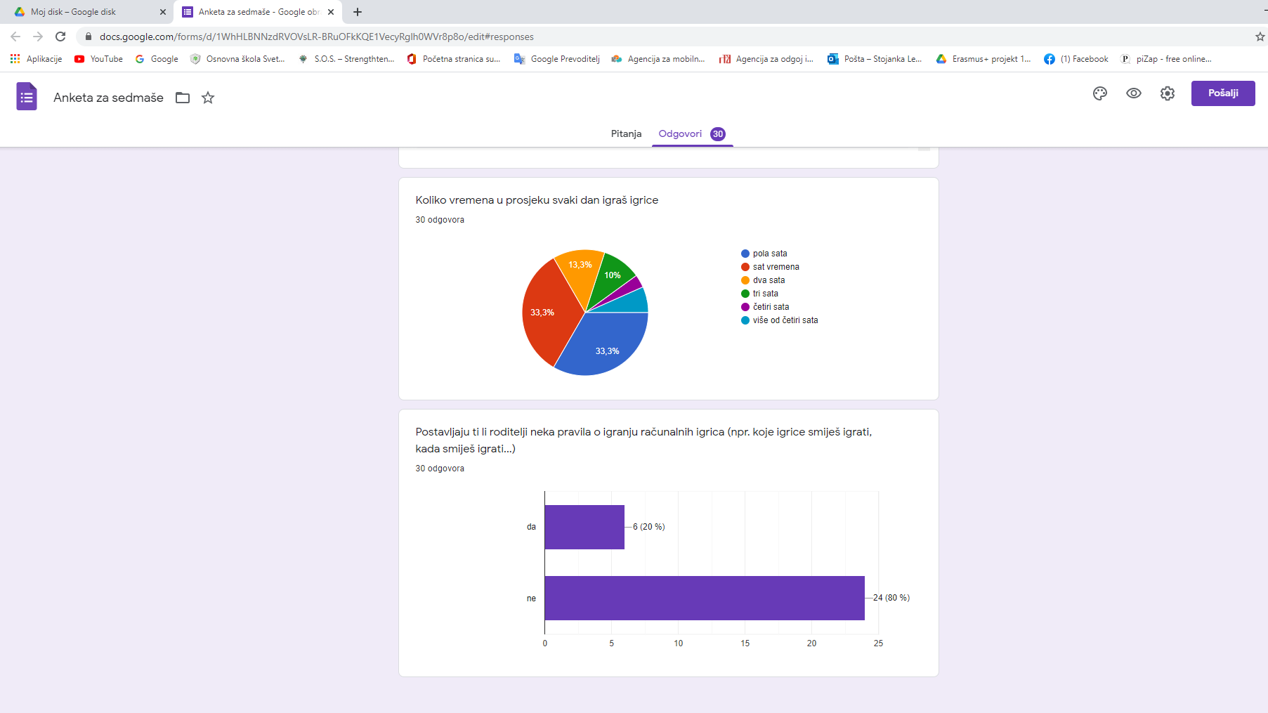 Jedan od podataka koji smo doznali anketiranjem je i onaj o postotku roditelja koji učenicima određuju, odnosno ne određuju pravila u vezi igranja videoigara. Čini nam se da upravo u tom grmu leži zec i da je zijevanje na satovima posljedica izostanka roditeljskih pravila u vezi igranja videoigara.