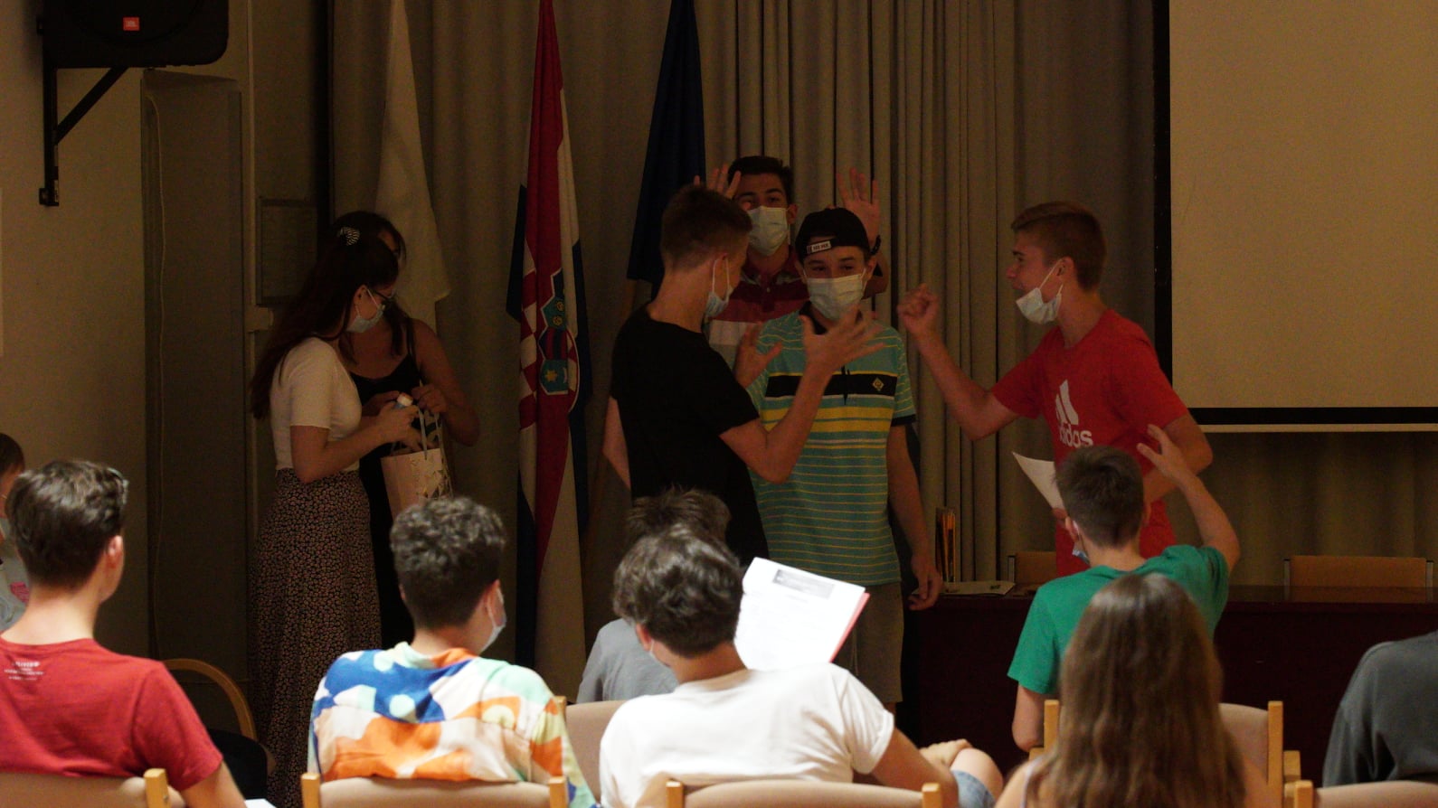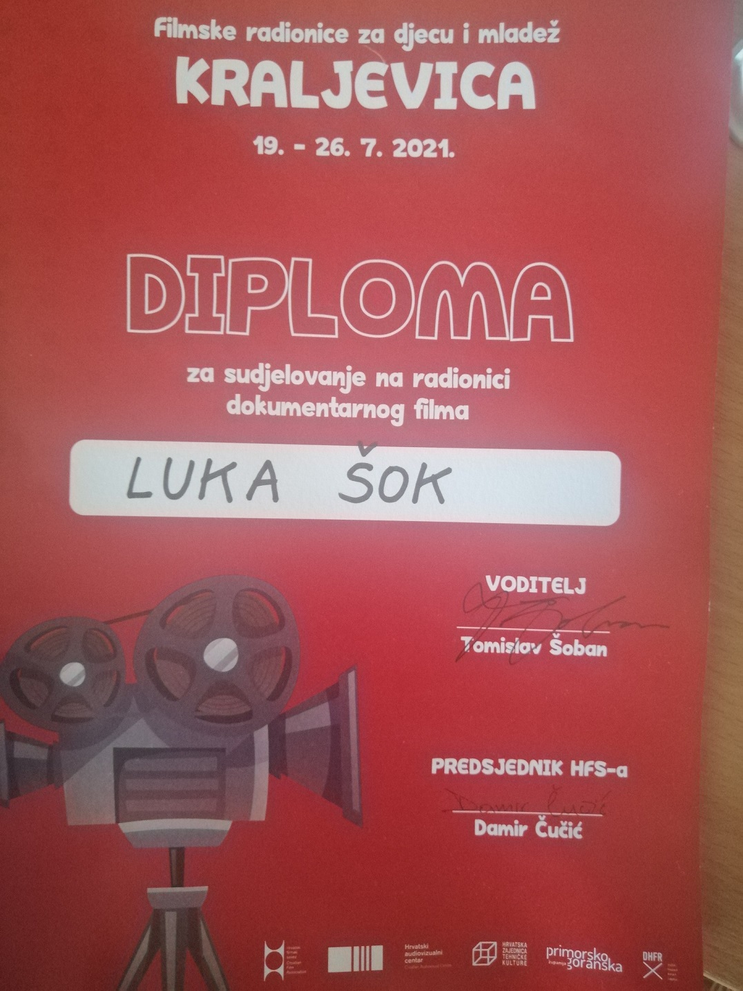 Na pobjedu u kvizu podsjećat će nas puhalice za balone od sapuna i loptice koje smo dobili za nagrade, a na ovih 7 nezaboravnih dana u Kraljevici podsjetnik će biti i diplome za sudjelovanje. Njih smo, dobili posljednjeg dana nakon što smo pogledali sve naše filmove. Valja spomenuti da nas je u Kraljevici bilo 30, a snimili smo 4 filma. Uz naš o Nacionalnom centru tehničke kulture, dio naše dokumentarne ekipe snimo je još i kratki dokumentarac pod naslovom “Sve ljepote Kraljevice”. Polaznici radionice animiranog filma snimili su film “Čuvajmo okoliš”, a ekipa s radionice igranog filma snimila je kratki igrani film “Bumerang”. /Luka Šok, 8. a; foto: arhiva Hrvatskog filmskog saveza/