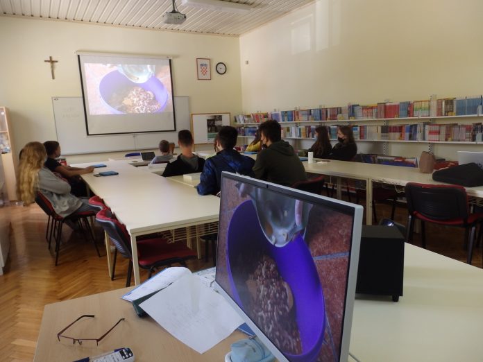Na početku sata gledali smo kratki film “Ruke” naše školske filmske grupe. Film  govori o bacanju hrane pripremljene u našoj školskoj kuhinji. Zaključili smo da je to situacija kojom se ne možemo ponositi i ne pridonosi održivom razvoju. Više informacija o svih 17 ciljeva održivog razvoja dostupno je u SWAY PREZENTACIJI. /Magdalena Ivšak, 8. a; foto: S. L./