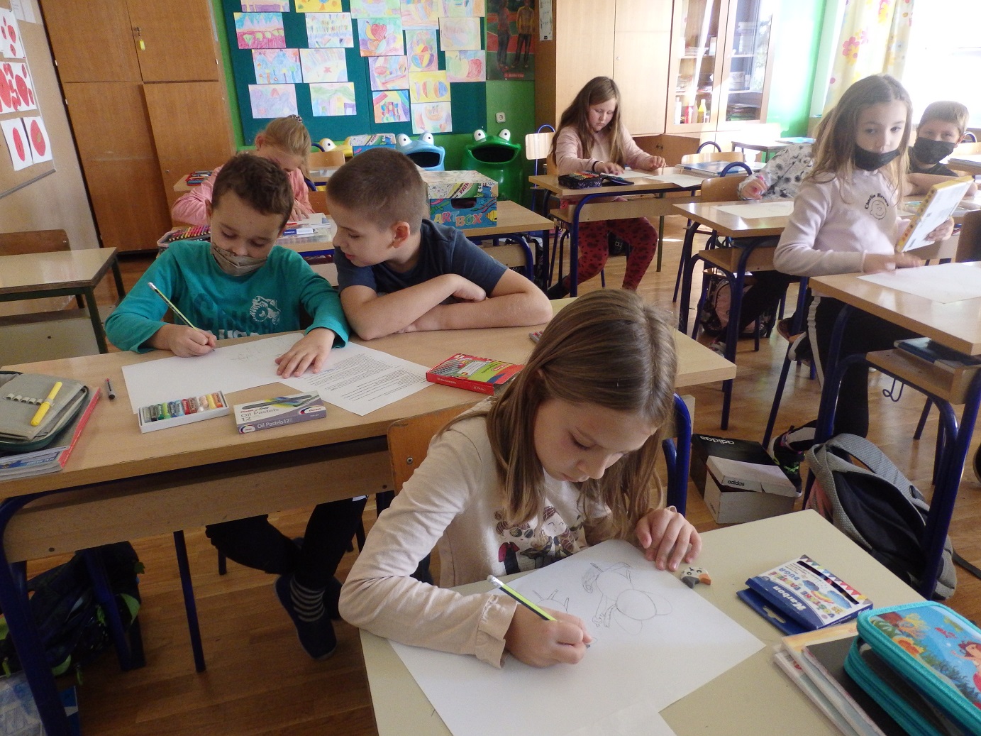 Prva slikovnica koju su čitali zvala se “Nisam ja”, a tema joj je bila laganje. Učenici su zatim pisali vlastite priče o laganju, a potom su u oba razreda odabrane najbolje priče. U crtanju slikovnica sudjelovali su svi učenici, a knjižničarka Stojanka Lesički crteže je skenirala i objavila slikovnice u web alatu Book Creator. /Iva Beloša, 6. b; foto: S. L./