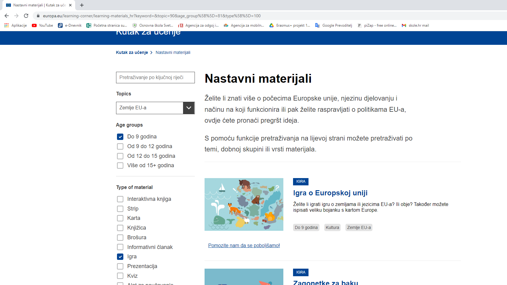 Za sve one koji vole igrice i kvizove na internetu EU Kutak za učenje je idealno mjesto. Na ovoj platformi na zabavan način može se doznati mnoštvo informacija o funkcioniranju Europske unije, ali i zemljama koje čine EU.