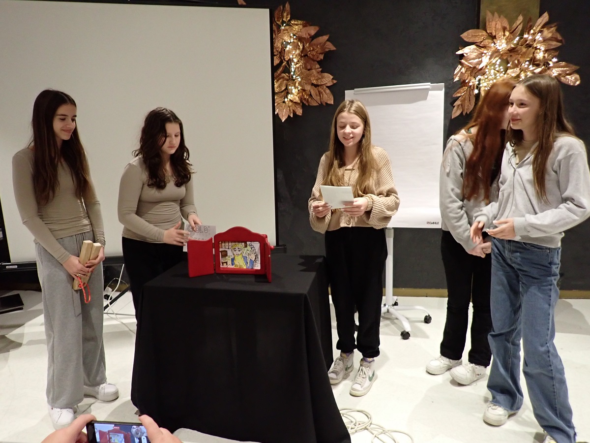 Na toj smo radionici i mi sudionici mobilnosti izrađivali svoje kamišibaj priče. Imali smo vremena samo pola sata, a naš je tim napravio drugačiju verziju Zlatokose. No, kako je dogovoreno da za mobilnost u Španjolskoj u ožujku svi timovi naprave svoje kamišibaj priče, imat ćemo puno više vremena da napravimo našu priču. Erasmus+ timu mogu se pridružiti i svi zainteresirani učenici koji vole crtati i pričati priče. /Lucija Vukoić, 8. a; foto: S. L./