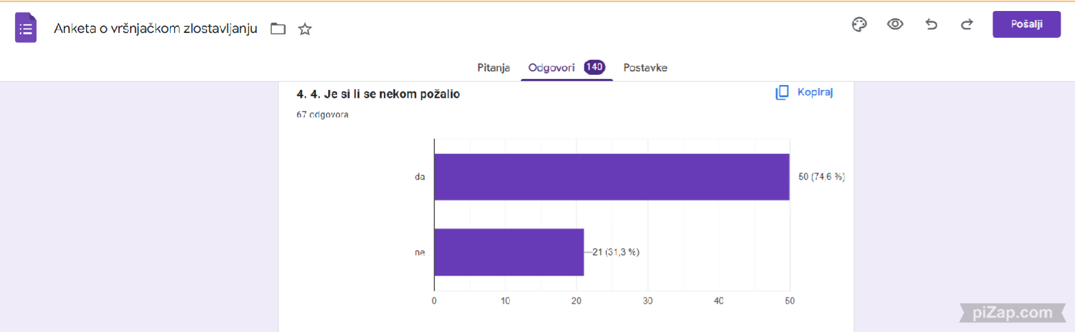 Ipak vrijedno podijeliti s nekim problem i da je to pomoglo potvrdio je 21 ispitanik ili 67,7 posto onih koji su doživjeli nasilje na internetu. U sve tri vrste nasilja najviše ispitanih požalilo se roditeljima. Da nije dobro trpjeti već da treba podijeliti problem i zatražiti pomoć smatramo i mi jer dugotrajno trpljenje nasilja može za posljedicu imati različite fizičke i mentalne probleme.