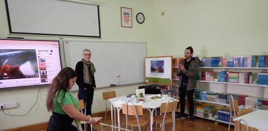 Naši gosti nisu došli praznih ruku, samostojeći Rodeov mikrofon koji su nam poklonili koristit ćemo uskoro u izradi audiodeskripcija za naš film “Ruke” Iwa Dugač, Jana Šivak i Antonio Pavlović iz Alternatora, udruge za promicanje stvaralaštva i jednakih mogućnosti – najpoznatije po organizaciji Festivala prava djece, posjetili su našu školu u petak. Cilj njihova posjeta … Continue reading Gosti iz Alternatora učili nas kako prilagoditi filmove za slijepe i gluhe