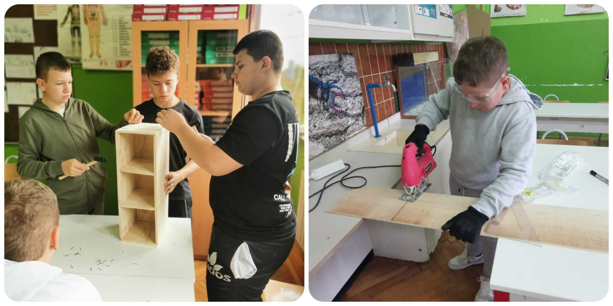 S našom učiteljicom Matejom Benjak, protekla četiri tjedna na satovima tehničke kulture nema što nismo radili. Pilili smo, brusili, zabijali čavliće, lijepili pa i razbijali cigle, ali stigli smo do rezultata. Naši radovi – kućica za ptice i hotel za kukce, nakon puno truda su završeni i s nestrpljenjem čekamo da dođu pred žiri. Naime, naše će radove ocjenjivati stručni žiri Regionalnog centra za gospodarenje otpadom sjeverozapadne Hrvatske – Piškornica koji je raspisao natječaj za natjecanje u osnovnim školama na temu gospodarenja otpadom.