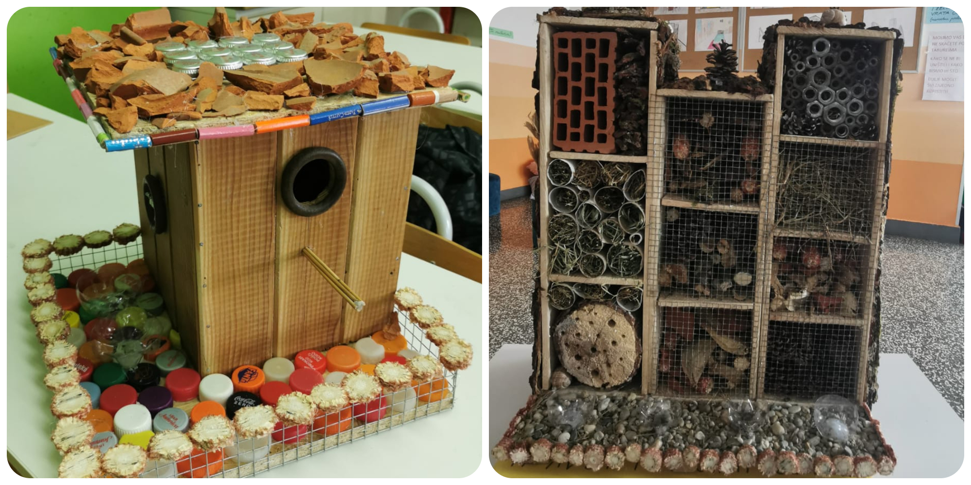 Naša učiteljica Benjak prijavila nas je na Natječaj jer želi da više naučimo o recikliranju i prenamjeni, a ovim temama bavimo se ove godine i u našem Erasmus+ programu „Zero Waste“. Osim razvijanja vještina u radu s drvetom, izrada kućice i hotela su ujedno i poticaj da i sami prenamijenimo neki uporabni predmet koji nam više ne treba. Zato smo koristili razne već korištene predmete (stare daske, crijep, žica, plastične boce, čepovi, slamu, kukuruzovinu, slamu…)