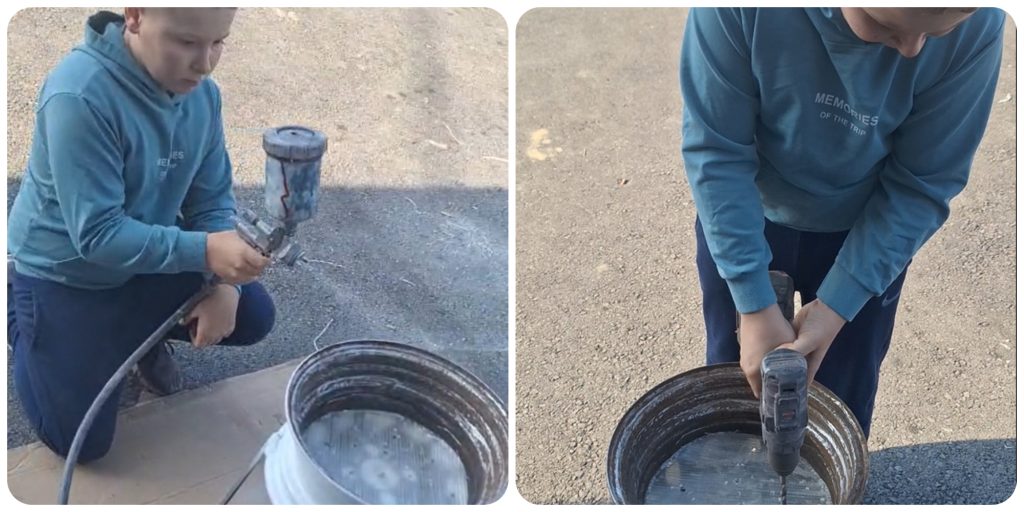 U tom procesu valjalo je očistiti (izbrusiti) felgu, zavariti metalne nožice, bojati, umetnuti pleksiglas na dno i izbušiti rupe u njemu, oslikati teglu i na kraju posaditi cvijeće. – Nije baš bilo jednostavno, neke stvari poput varenja radio sam prvi puta, ali moj tata je automehaničar pa sam ga često gledao kako to radi. Da bi sve sigurno prošlo tata je bio kraj mene kad sam radio i davao mi je potrebne upute. Radio sam u etapama u razdoblju od 5 dana. Ovo mi je bio baš zanimljiv zadatak i rado bih se ponovno upustio u sličan zadatak prenamjene nečeg nepotrebnog u nešto što nam može koristiti – rekao nam je Dominik, dodavši da ga privlači zanimanje poput očevog. /Eleonora Črnek, 6. b/