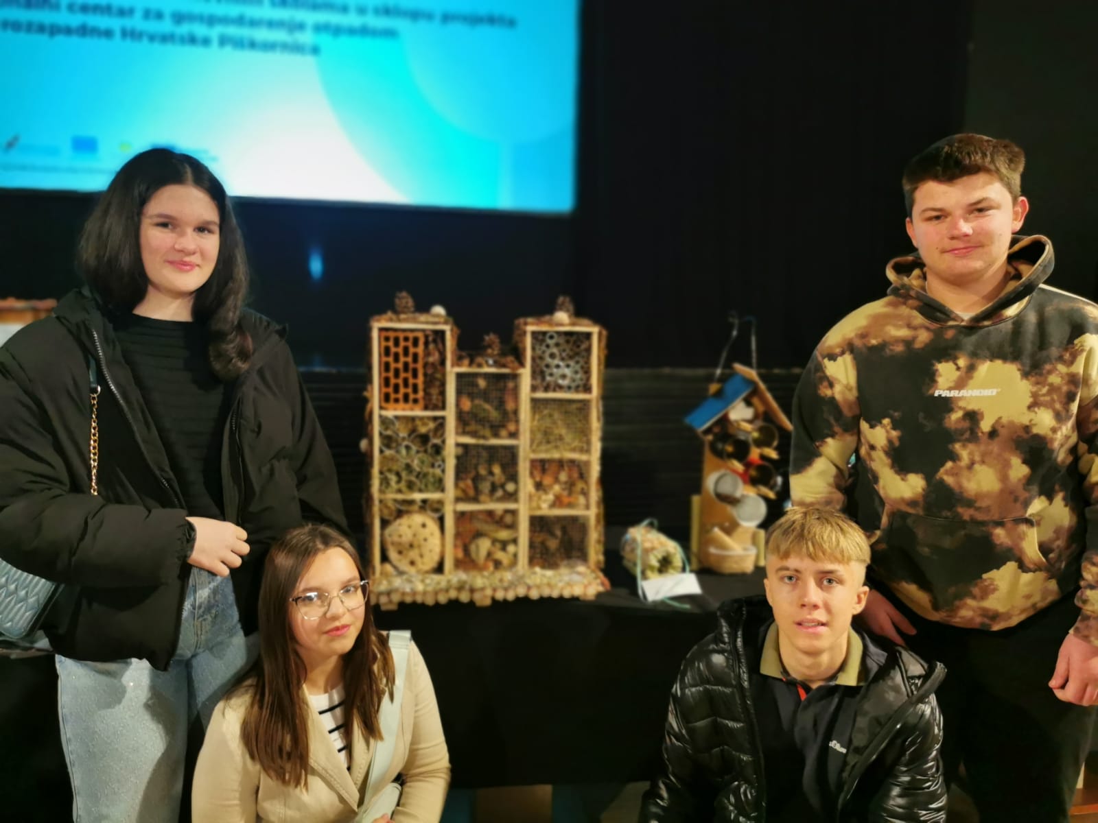 Župan Tomislav Golubić i Nikola Martinaga iz RCGO Piškornica, uručili su danas predstavnicima 8. b razreda, bon u vrijednosti od 2.000 eura. Vrijednu nagradu dobili smo za naš hotel za kukce s kojim smo osvojili prvo mjesto na natjecanju na temu gospodarenja otpadom u organizaciji Regionalnog centar za gospodarenje otpadom sjeverozapadne Hrvatske – Piškornica (RCGO).