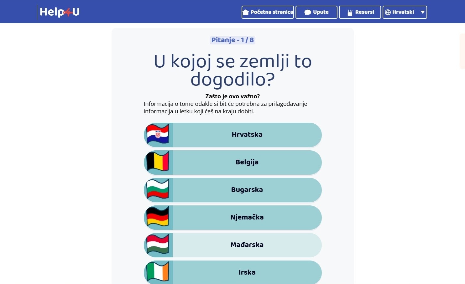 Kako djeca često nemaju dovoljno informacija kad im se dese primjeri takve vrste zlostavljanja ili im je neugodno pričati s odraslim osobama o takvim stvarima, ova platforma može biti poticaj da ohrabri djecu da dođu do korisnih informacija i odluče što će činiti dalje. Hrvatska policija koja je o projektu Help4U obavijestila Ministarstvo obrazovanja, znanosti i mladih, podsjeća i na njihovu platformu RED BUTTON . Ta platforma omogućuje prijavu seksualnog i drugih vrsta nasilja nad djecom. /Franka Orak, 6. a/