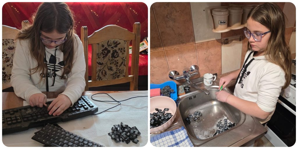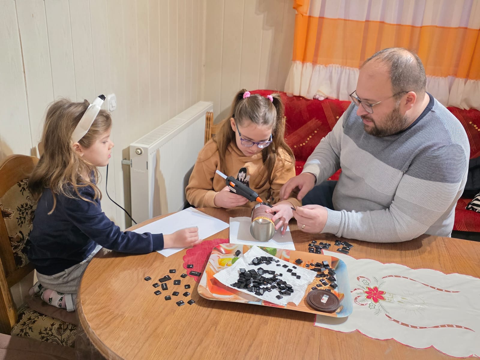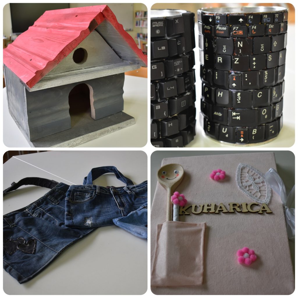 Maštu i kreativnost pokazali su i ostali roditelji i učenici koji su već donijeli svoje radove. Pristigli su radovi od ostataka drveta, vune, trapera, papira, tkanine i stakla, a Karmen Kokot iz 3. razreda PŠ Bočkovec i njeni roditelji odlučili su iskoristiti tipkovnice od starih računala. – Na tavanu smo imali puno starih tipkovnica, a u kuhinji limenke od kave i odlučili smo ih iskoristiti. Bilo je to baš zanimljivo obiteljsko druženje. Karmen i tata Kruno odvijačem su vadili tipke. Ispadale su posvuda pa se uključila i mlađa kćer koja ih je skupljala. Onda smo Karmen i ja prale tipke, a tata ih je lijepio. Usput smo se zafrkavali i bilo je to baš dobro druženje, a kako ja shvaćam ovu aktivnost to joj je i bio cilj. Podijelili smo vrijeme i zajedno radili nešto kreativno poučivši djecu da ne treba baš sve kupiti – rekla nam je Andrea Kokot, pomoćnica u nastavi u našoj školi i majka trećašice Karmen.