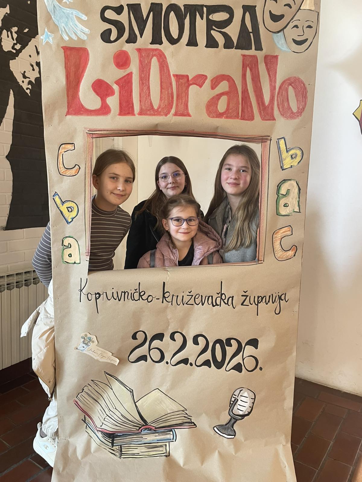Naša škola uspješno se predstavila na županijskoj razini Smotre LiDraNo, održanoj danas u OŠ „Vladimir Nazor“ u Križevcima. U sve tri kategorije u kojima smo se predstavili predloženi smo za narednu, državnu razinu LiDraNa. To su radijska igra „Znaj i ti imaš sjaj“, skupni nastup „Djevojčica sa šibicama“ u kategoriji dramsko-scenskog izraza te školski digitalni list „Klinček“.