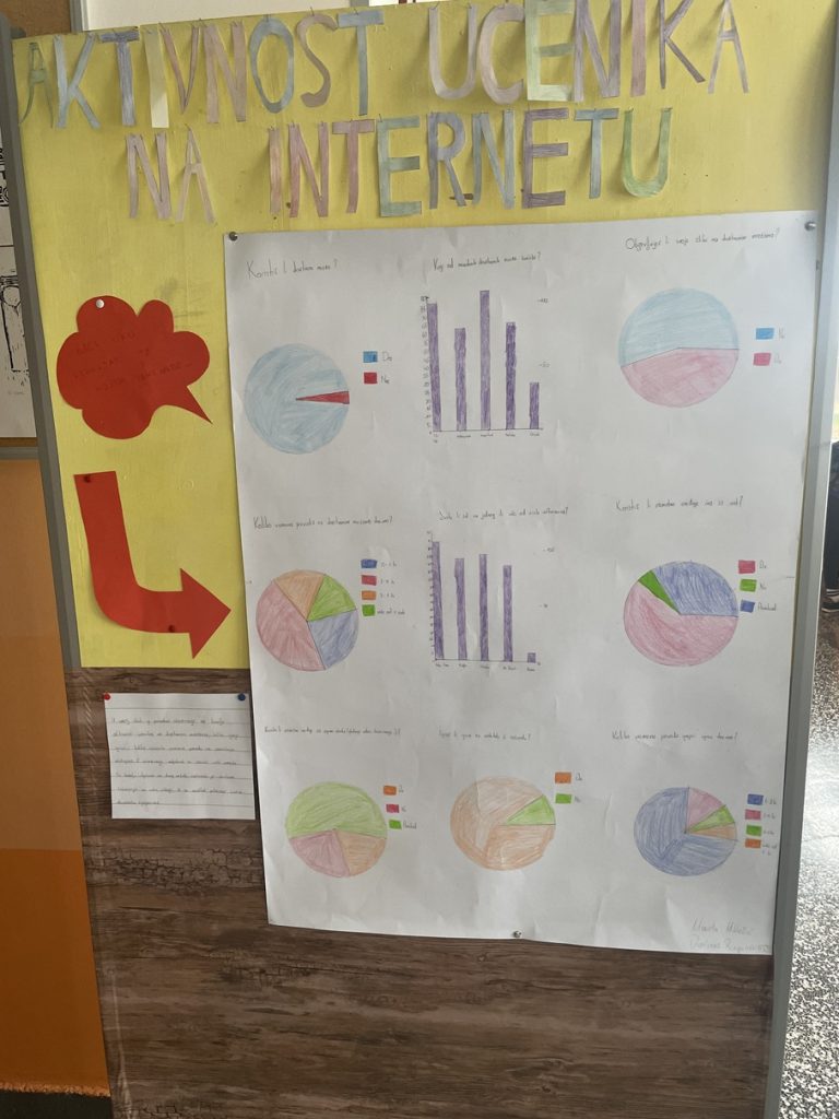 Ankete u kojima su se ispitivale aktivnosti naših učenika na internetu prije su se u našoj školi obično provodile u okviru različitih projekata ili za potrebe članaka u „Klinčeku”, ali ovu koju interpretiramo u nastavku proveli su matematičari. Preciznije, provele su je Marta Miklečić i Dolores Ruganec, polaznice dodatne nastave iz matematike koju vodi učiteljica Karolina Bugarin.